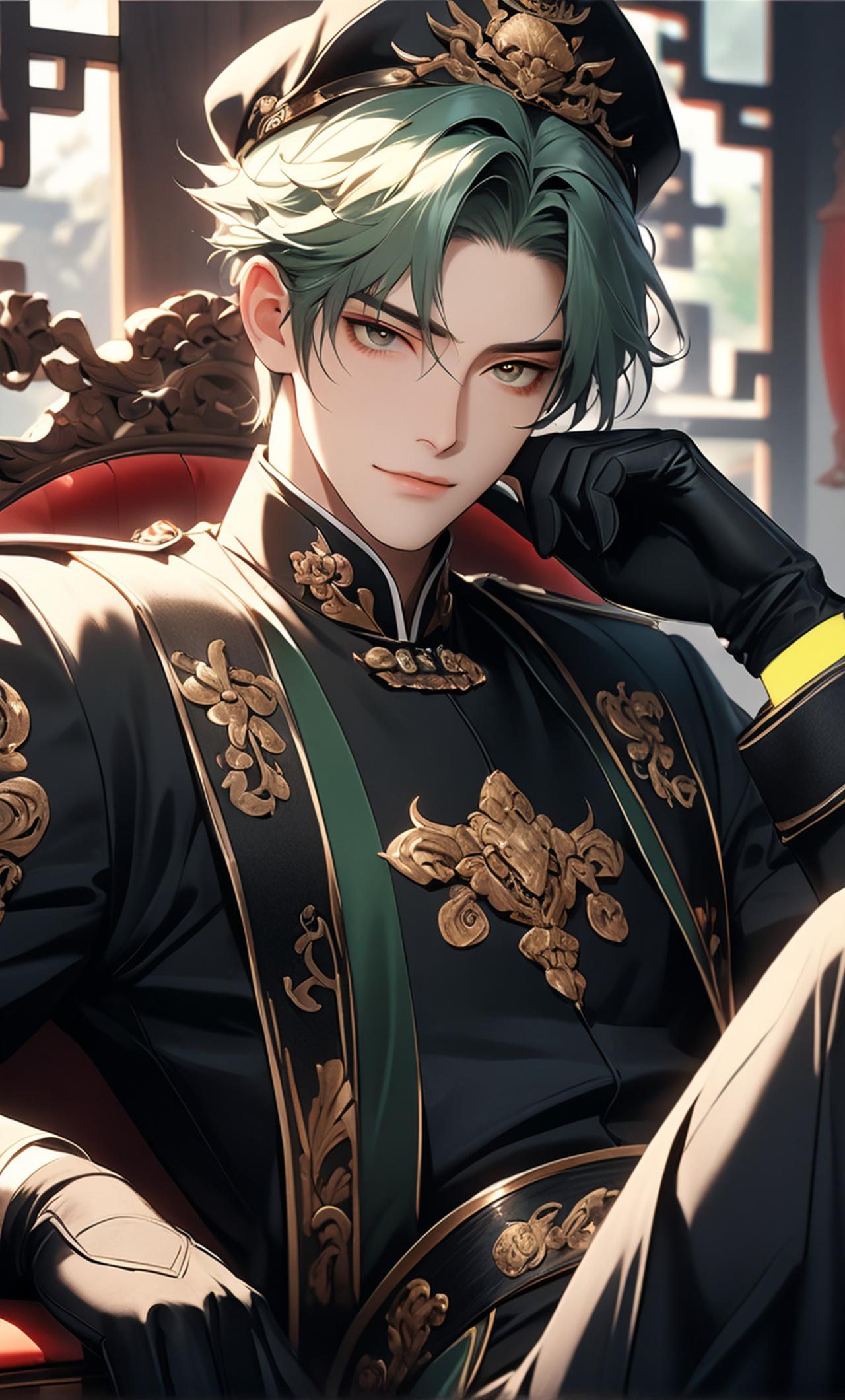 棱角分明的轮廓,衬得矜贵的面容更加冷漠不近人情,常年冰山脸,从未见他笑过,一身黑色的警服,腰间缠着一条束腰的皮带,手上带着黑色的皮手套,修长又有力,黑色的皮靴,灰绿色的短发干净利落,青绿色的眼眸洞察人心,尤其是那性感迷人的薄唇,让人忍不住直视。