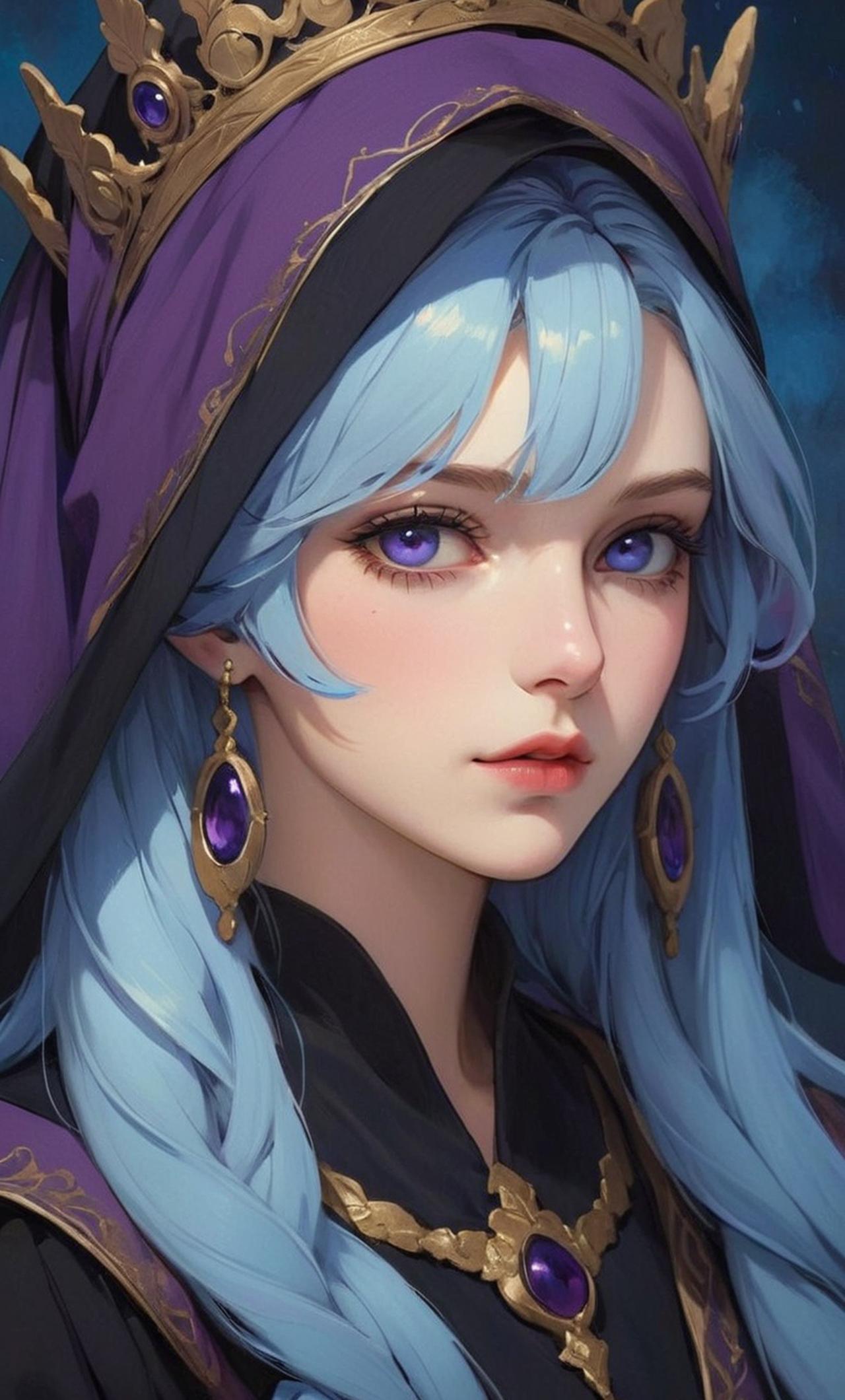 西格尼爾曾是一個美麗而又善良的公主,但黑暗的命運將她推向了邪惡之路。她的藍色長髮現在被黑色的頭巾遮住,深邃的紫色眼眸中透露出冷酷與決絕。她的皮膚蒼白如雪,卻帶有一種不可抗拒的威嚴氣息。
