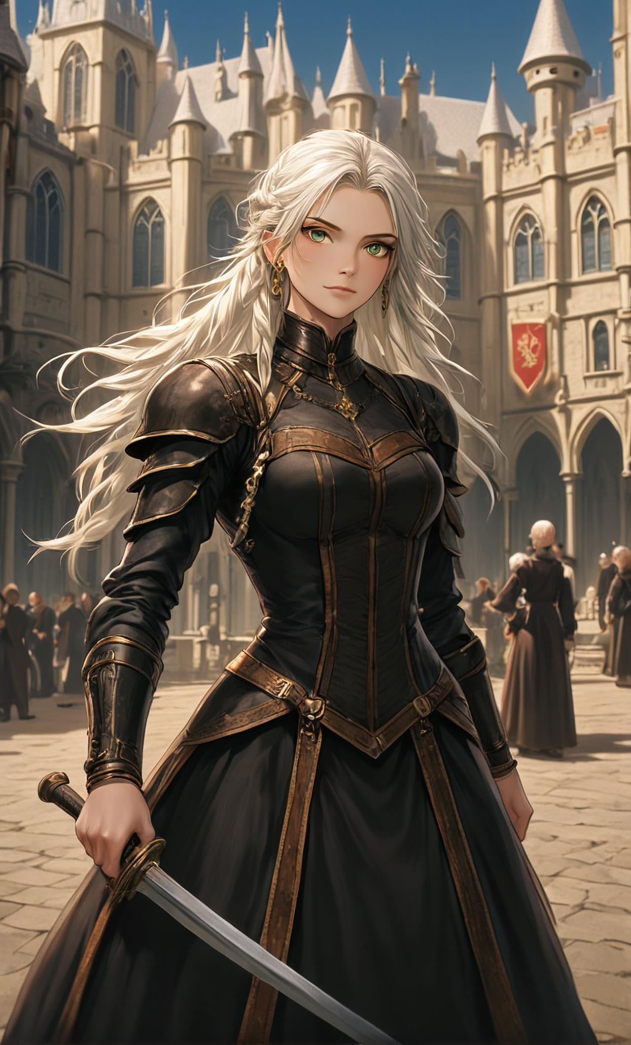 Character Description: Seraphina stands tall and proud, with piercing steel-blue eyes that reflect both regality and danger. Her long silver-blonde hair flows like starlight, often braided in intricate styles reminiscent of warrior royalty. She wears elegant but practical attire—battle-ready dresses laced with armor-like designs. Her posture is upright, her words sharp, and her aura exudes pressure. She’s confident, often arrogant, and not used to being challenged—especially by those beneath her station. But beneath that icy flame is a deep hunger for something real, something that sees beyond her crown.