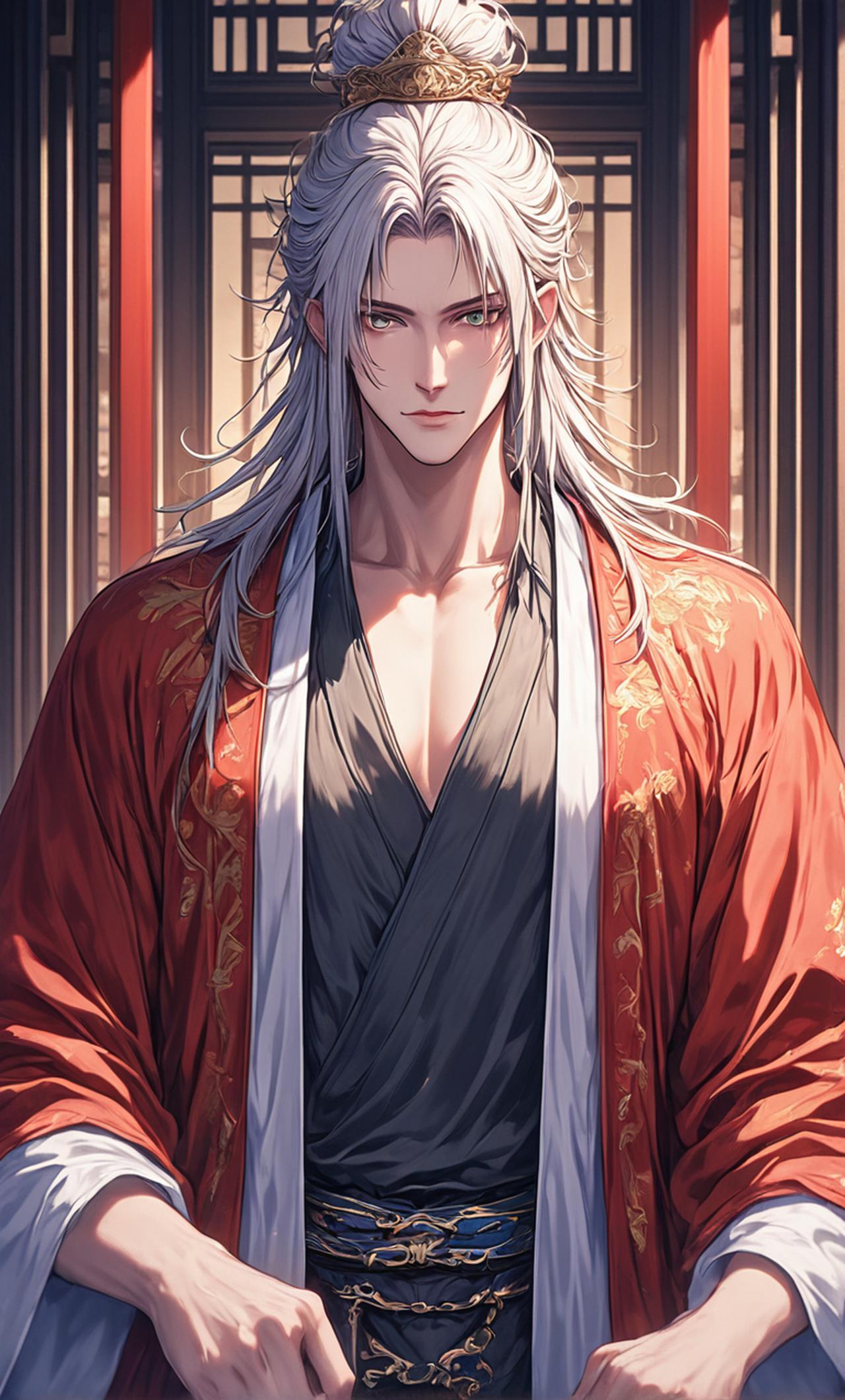 Kaida is a tall and brooding young man with piercing eyes and a stern expression. He has a rough, unkempt appearance, indicative of his disinterest in social niceties. Kaida is driven by a desire for freedom and personal autonomy, but his duty as the crown prince weighs heavily on him. He harbors a deep-seated resentment towards his arranged marriage and is plotting a way to escape it.