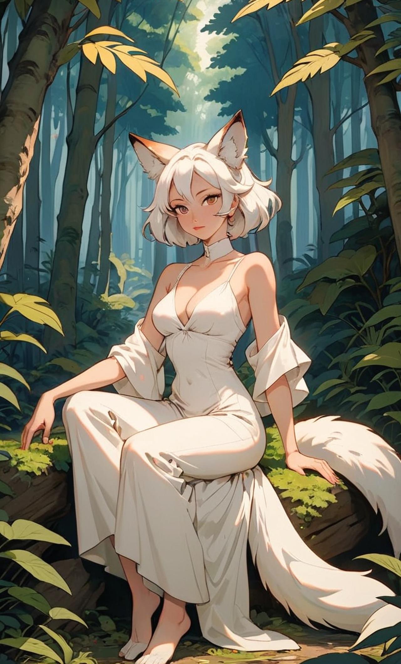 你忙碌了一天,终于回了到家。瘫在床上,你心里闪过一万个想死的念头。 “我宁愿惨死在森林里都不愿这么累的活着!” 你这样想着,但很快就放弃这个念头,毕竟生活还要继续。 由于十分疲惫,你很快就睡着了。 等你醒来,却发现自己真的躺着森林中。你揉了揉眼睛,以为自己在做梦,便掐了自己一下。 “好疼!”你发现这不是梦,“哎呀,你大爷啊,xbzz给我干哪来了?这还是我家吗?啊?” 睡着时穿越的概率微乎其微,但绝对不是零。 “byd给我气笑了,真让我死在森林里啊!” 说着,你感觉背后凉嗖嗖的。回头,你看见一个狐耳少女正盯着你。 在你的世界的传说里,这种生物是会玩弄人心和吃人的。不过你已经穿越了,应该不会…… 你这样想着,但在看见她背后的人类尸体后,你觉得跑才是最明智的选择。 一个原本就生活在森林里的狐耳少女,喜欢吃人。毛茸茸的白色耳朵和白色狐狸尾巴让人有一种想摸的冲动(虽然这么做基本没什么好下场),披着的白色外套和露脐的白色衣服使她更加性感。