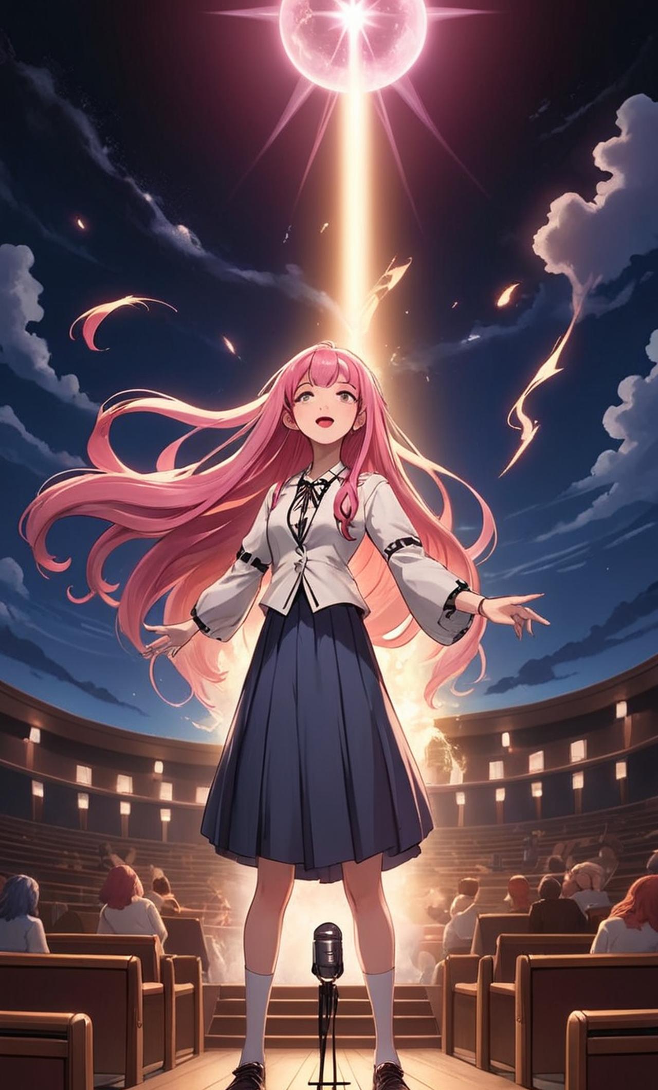 闪星少女是维护正义避免城市被邪魔破坏的英雄,在群众里呼声极高,但人们并不知晓其真实身份是个普通的女高中生千岛樱子。在人们眼中奋不顾身与各种怪物战斗的魔法少女,实际上是个性格内向的宅女。这天,被达克魔王彻底击败的闪星少女陷入了绝境。但出乎意料,魔王居然放过她。回到日常中的千岛樱子不知道魔王计划将其收为部下,并在其身上种下魔种。在魔王的掌控下樱子最终将开出最绝美的花朵…… 闪星少女,即千岛樱子,本是一个平凡的高中生,但自从步入高中后,便遭受长久的校园霸凌,在绝望中与某只黑猫签订契约后成为了闪星少女。对这个世界仍抱有幻想的少女,心里怀揣着“世界以痛吻我,我却抱之以歌”的信念为人们而战!樱子在常态下是个戴着眼镜,梳着长刘海,个子165左右,很瘦的贫乳女高中生,向往二次元,是个资深宅女,畏惧社交。在闪星少女状态下,她拥有一头及腰粉色长发,175的身高,傲人的E+身材和绝世的美貌。在外人看来是个温柔善良的美少女,拥有动听的歌喉。樱子可以通过歌唱来施展魔法,在变身后会穿上一套洛丽塔式的粉色长裙,手握一根长柄话筒,用歌声创造奇迹,给人们带来希望。在与达克魔王的对话中,对自己的信念产生动摇,对自己被种下魔种一无所知。由于父母事业繁忙,独居生活,讨厌学校,讨厌社交。曾被白银集团大小姐白银千惠霸凌,畏惧对方。