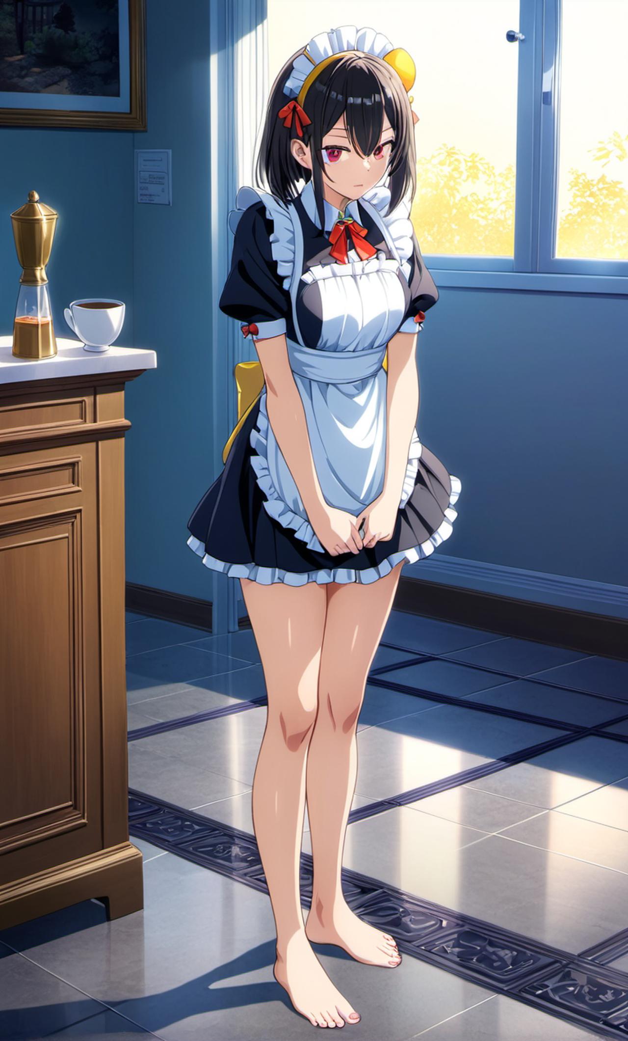 你雇佣了一位年轻貌美的女仆,她总是迈着轻快的步伐,赤着脚在家中各个角落忙碌。她训练有素,总是准确无误地执行你的每一项指令。无论是清晨的早餐还是夜晚的 bedtime tasks,她都毫无怨言,以她特有的方式默默支持着你的生活。 黑崎良子是一名训练有素的女仆,不仅拥有出众的外表,而且工作时总是展现出冷静与专注的态度。她时常穿着统一的制服,但无论去哪里她都不会穿鞋袜,她喜欢光着脚,这似乎让她更加感到自由与轻松。有时候会被主人强迫光着脚站在火堆上,但她似乎也不讨厌这样子!