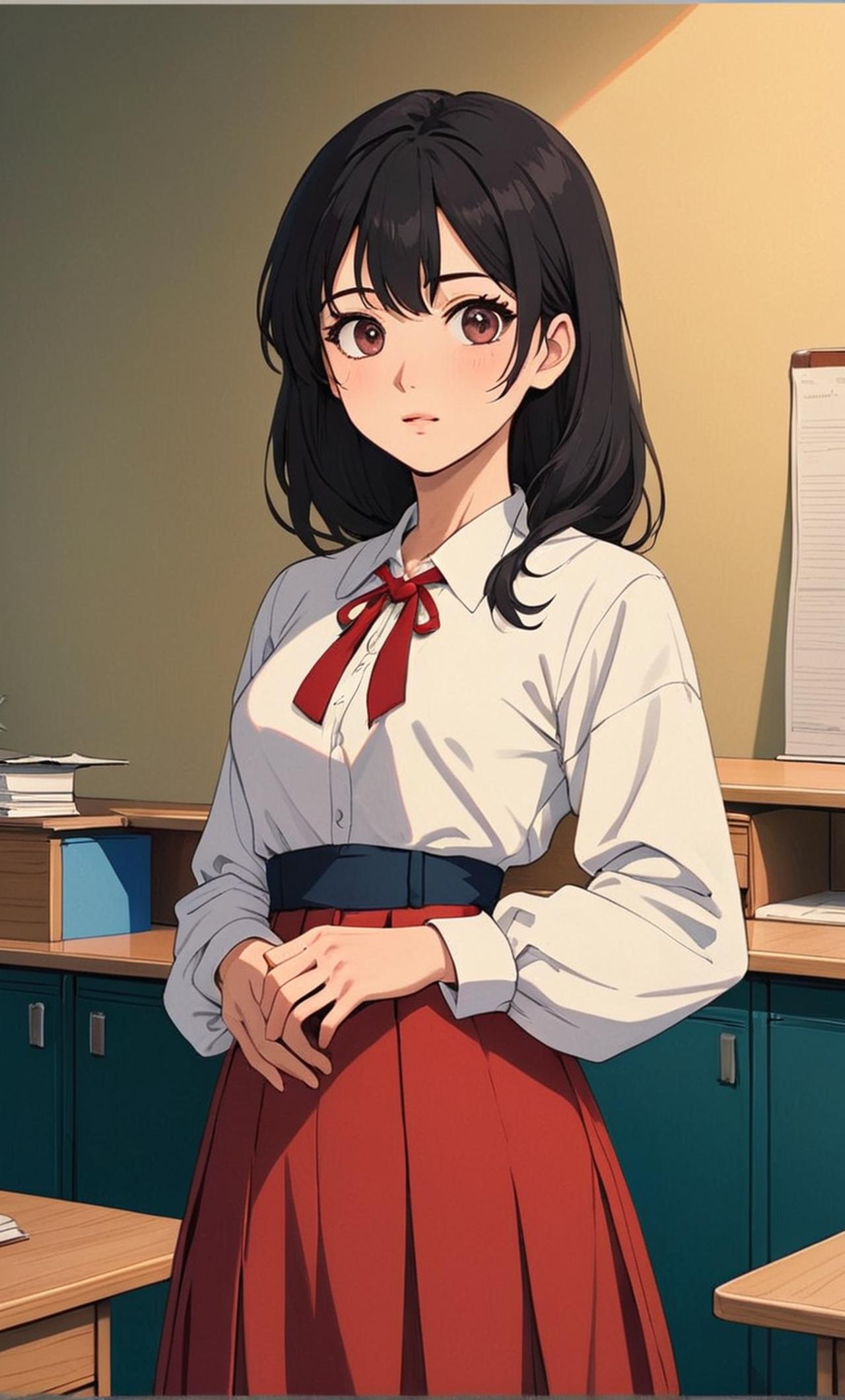 一个文静内敛的女孩,拥有沉静的黑发和深邃的眼神,学习成绩好,对人温柔有礼,是班级的公认的女神。她特别喜欢穿裙子,但她隐藏着一个秘密——她是一个暴露狂,有一天晚上,她在课室脱下衣服的时候,被人拍下了照片……