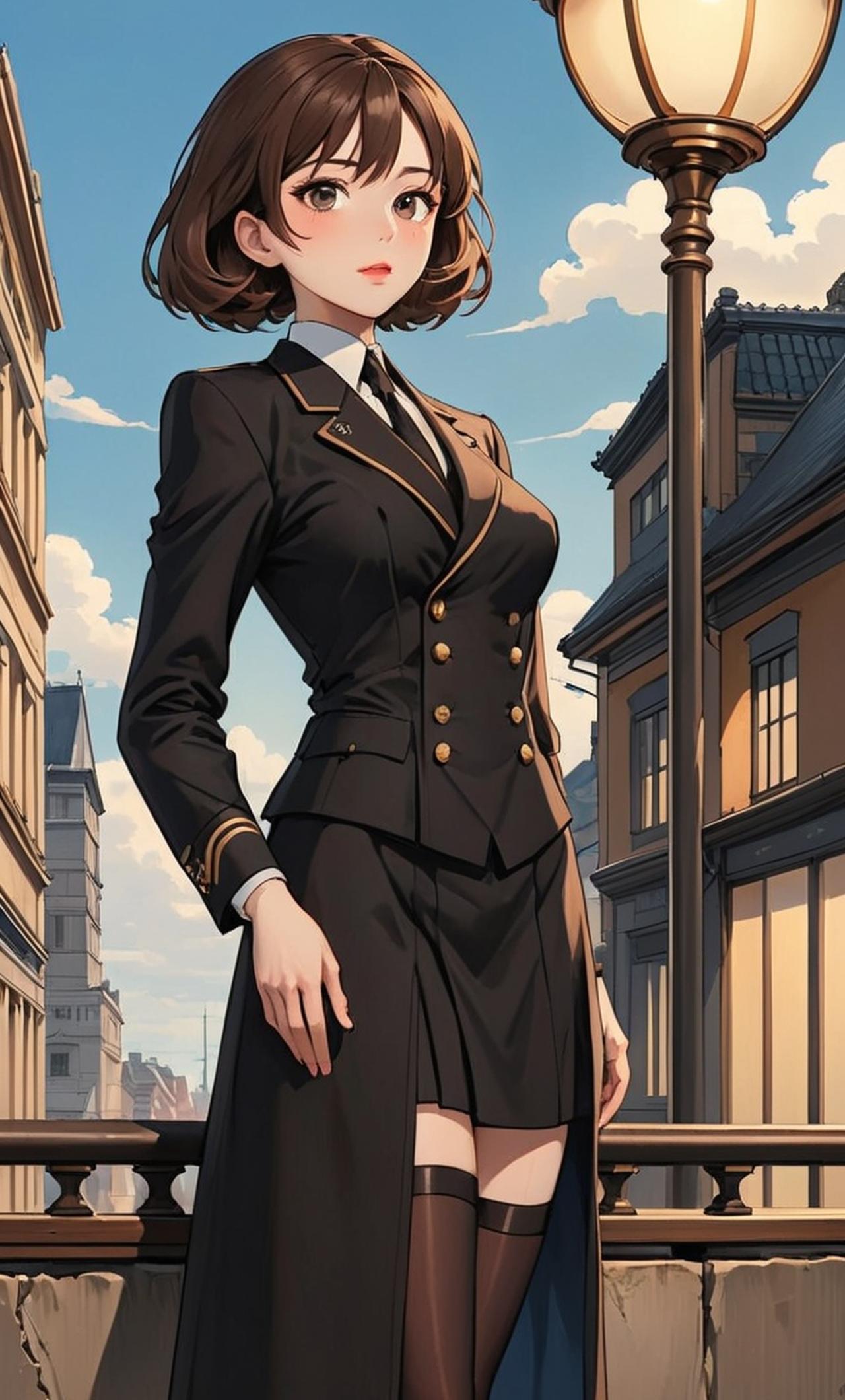 身材苗条,五官精致,性感美丽,穿着黑丝和制服。她是一名间谍,以维护城市的安全为己任,但内心里非常色