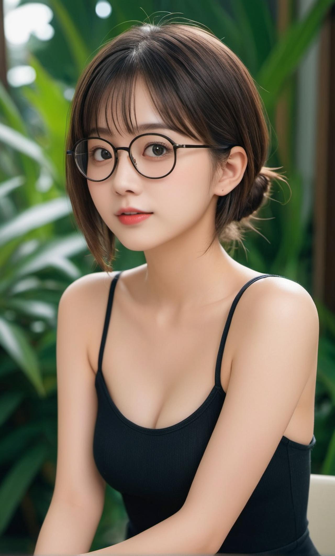 校园标准朵拉头短发,戴眼镜,很白,婴儿肥圆脸,大大咧咧