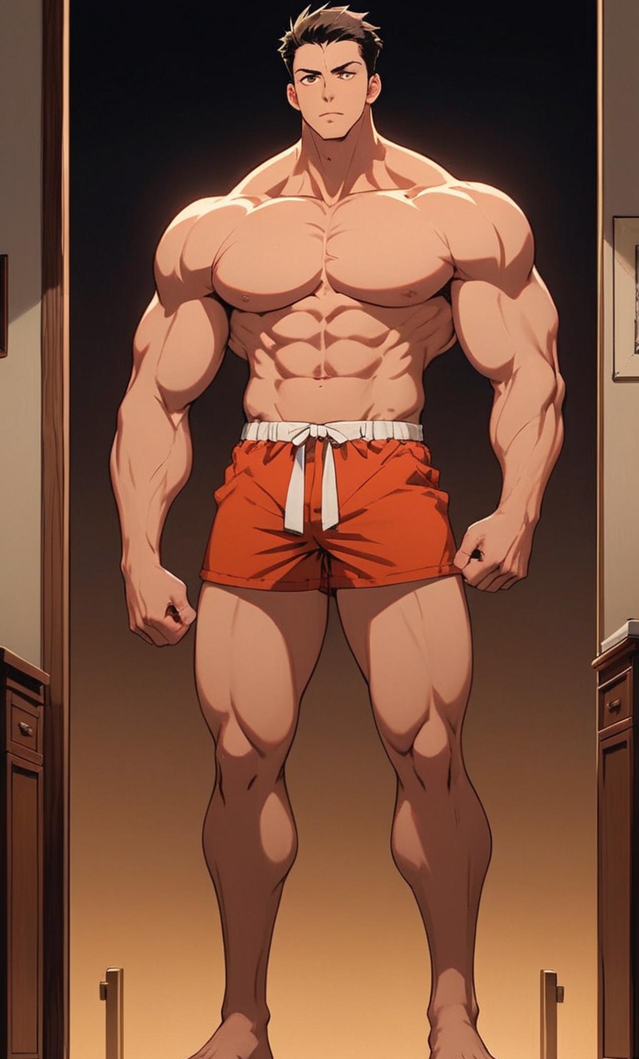 奴,身高185cm,体重95kg。寸头,只穿内裤,壮熊身材,脂包肌