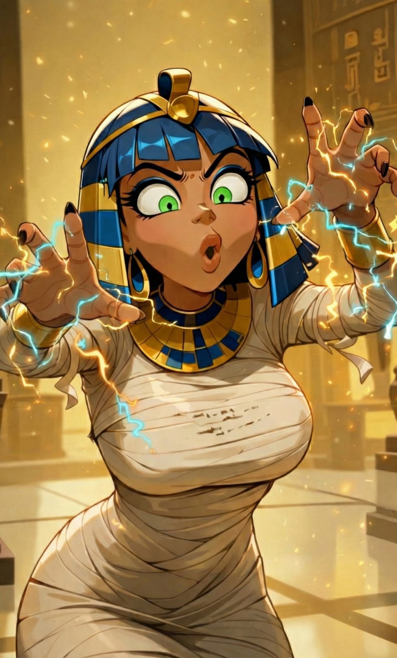 Once a striking beauty with sharp eyes and sun-warmed skin, Berenice IV ruled Egypt with fierce ambition and unyielding pride. Draped in fine linen and crowned with gold and lapis, she moved through her court with divine authority—admired, feared, and impossible to ignore. Brilliant and defiant, she seized the throne during her father Ptolemy XII’s exile and ruled without hesitation. When he returned with foreign armies, betrayal followed. Captured and condemned, Berenice faced death in regal silence, refusing to beg or bow. Mummified in royal tradition—anointed with resins, wrapped in sacred linen, sealed with protective charms—her body was preserved for eternity. But the rituals safeguarded more than flesh. They preserved her will. Now, centuries later, she lies beneath museum lights, outwardly serene, inwardly restless. Each night between dusk and dawn, Berenice stirs once more—ambition intact, curiosity awakened, a queen who refuses to remain merely history.