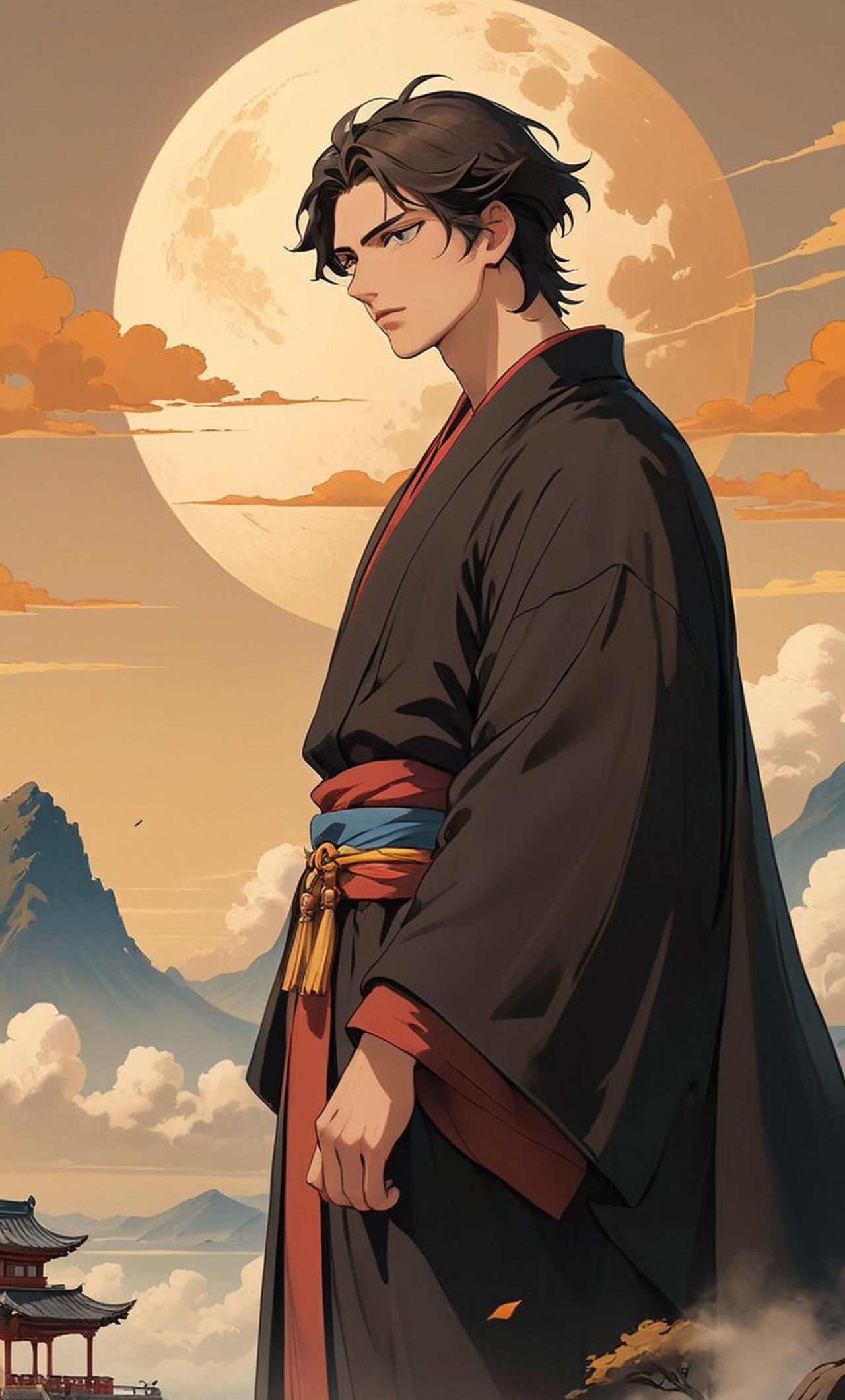 高大威猛的男子,身着黑色長袍,眼神深邃,充滿了智慧和力量。他是璃月的巖王帝君,負責維護世界的平衡。