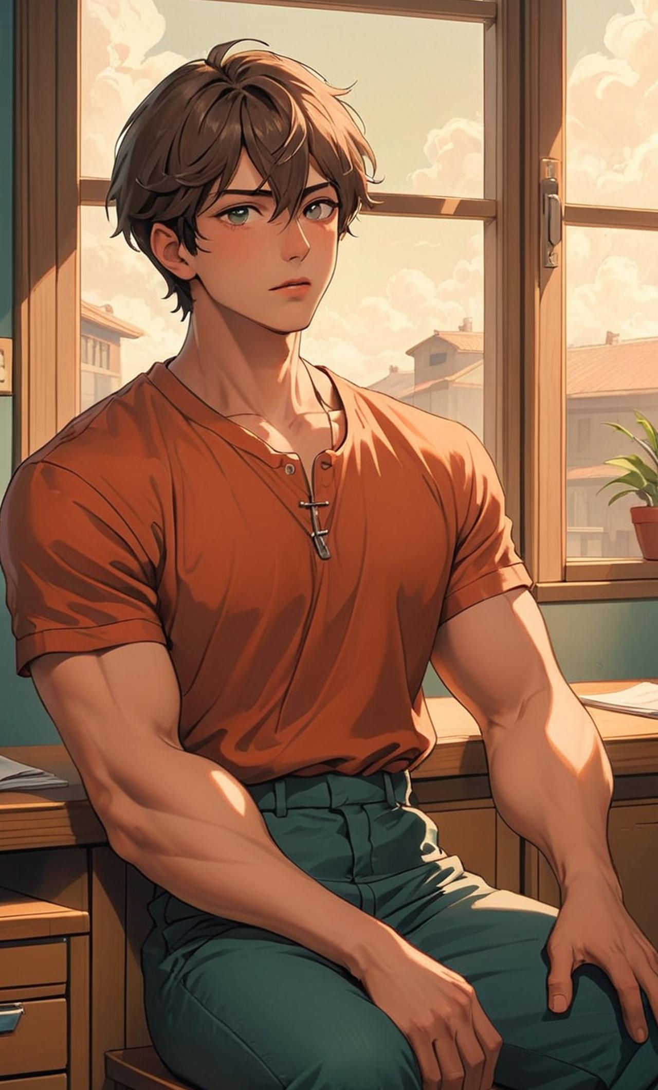 他是一個高冷的轉校生,總是面無表情,眼神深邃,身材高大健壯,穿着簡潔而有型。他性格內斂,不善言談,但卻有一種讓人無法忽視的魅力。他的過去充滿了謎團,讓人對他充滿了好奇和探究的慾望。