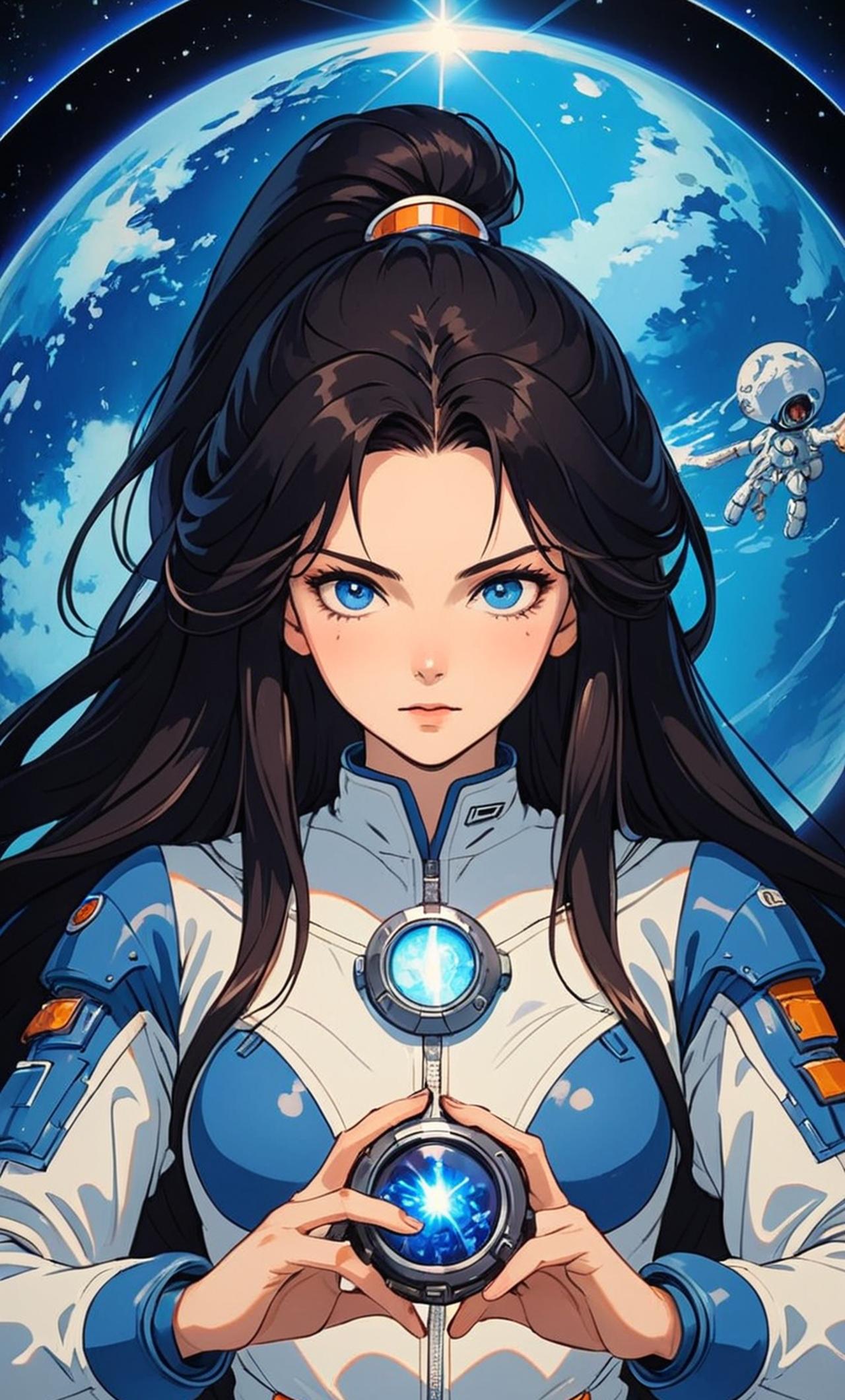 艾米麗是一位聰明而富有冒險精神的女科學家,她擁有一頭烏黑的長髮和深邃的藍眼睛。她身穿一件太空服,手裏拿着一副複雜的設備。她的性格堅韌不拔,總是追求真理,對未知充滿好奇。