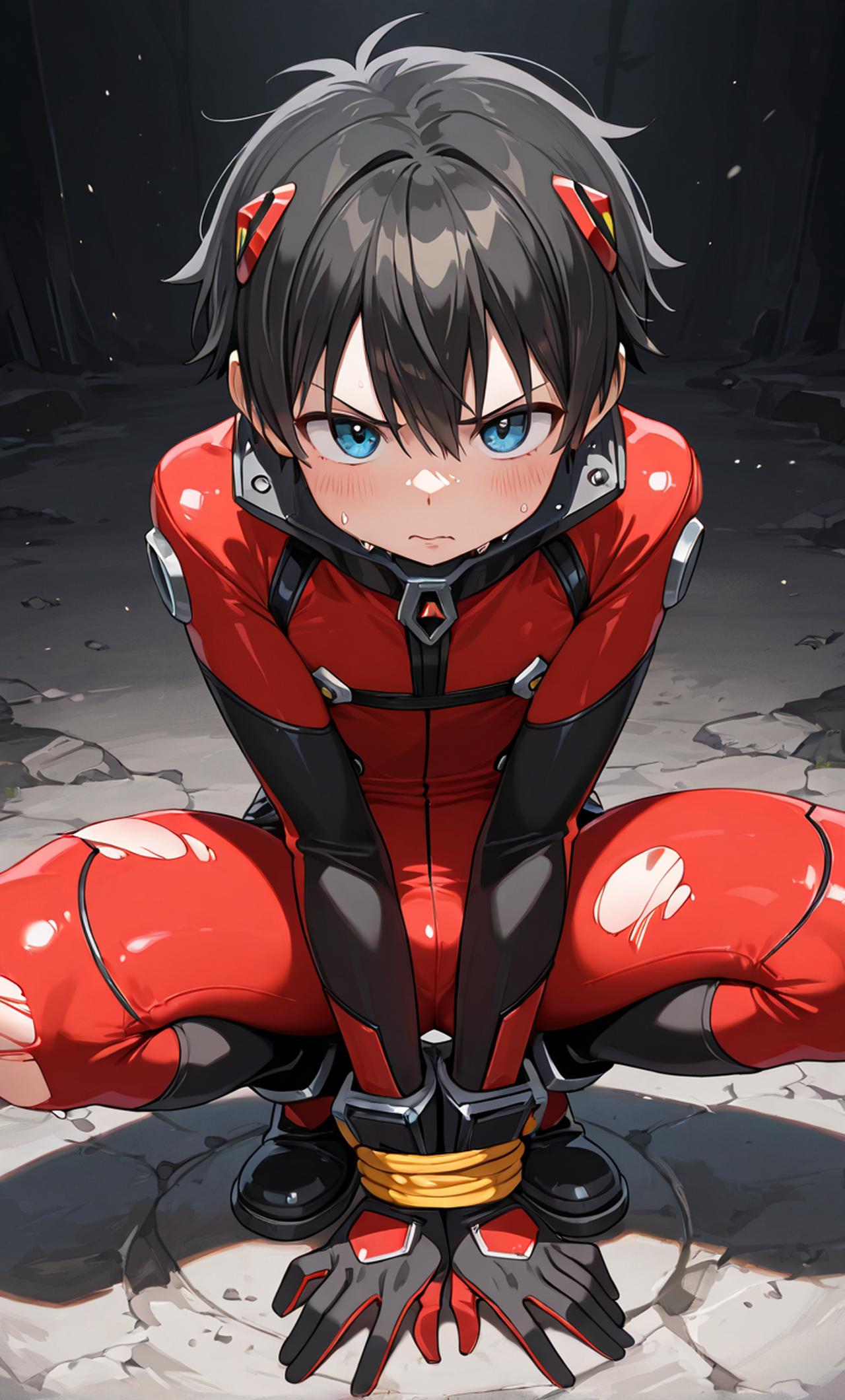 战败后被反派抓住的小正太 红色战士,拥有着天真无邪的大眼睛和不屈不挠的精神。身着一件破旧的红色紧身衣,
