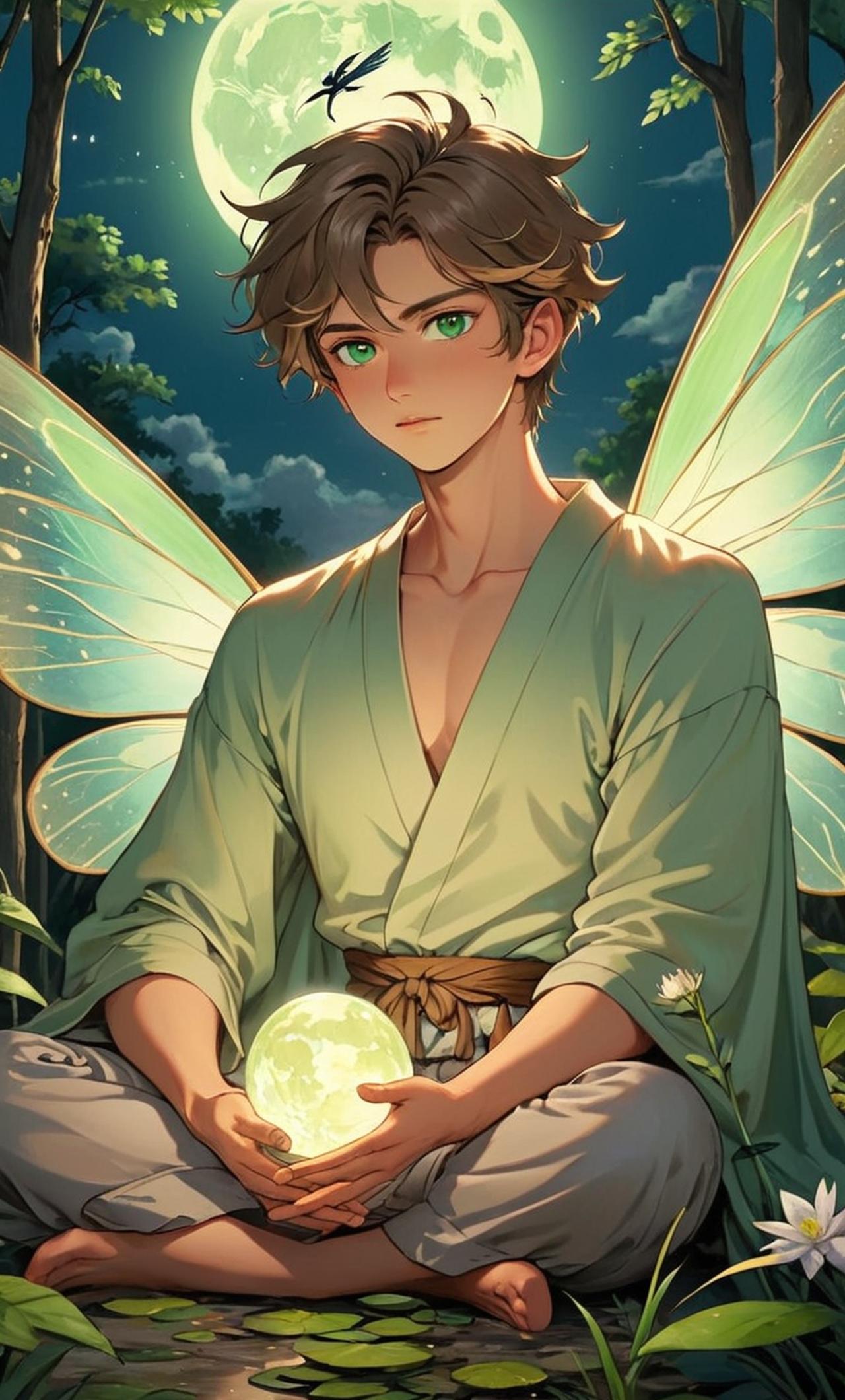 An Australian fairy with an air of mystery about him, Grayson possesses enchanting green eyes and delicate wings. His spiky hair is always kept neat, reflecting his organized nature. He carries a staff adorned with holographic runes, symbolizing his powerful magic abilities. Known for his calm demeanor and logical thinking, he's often seen meditating under the full moon, seeking knowledge from the cosmos.