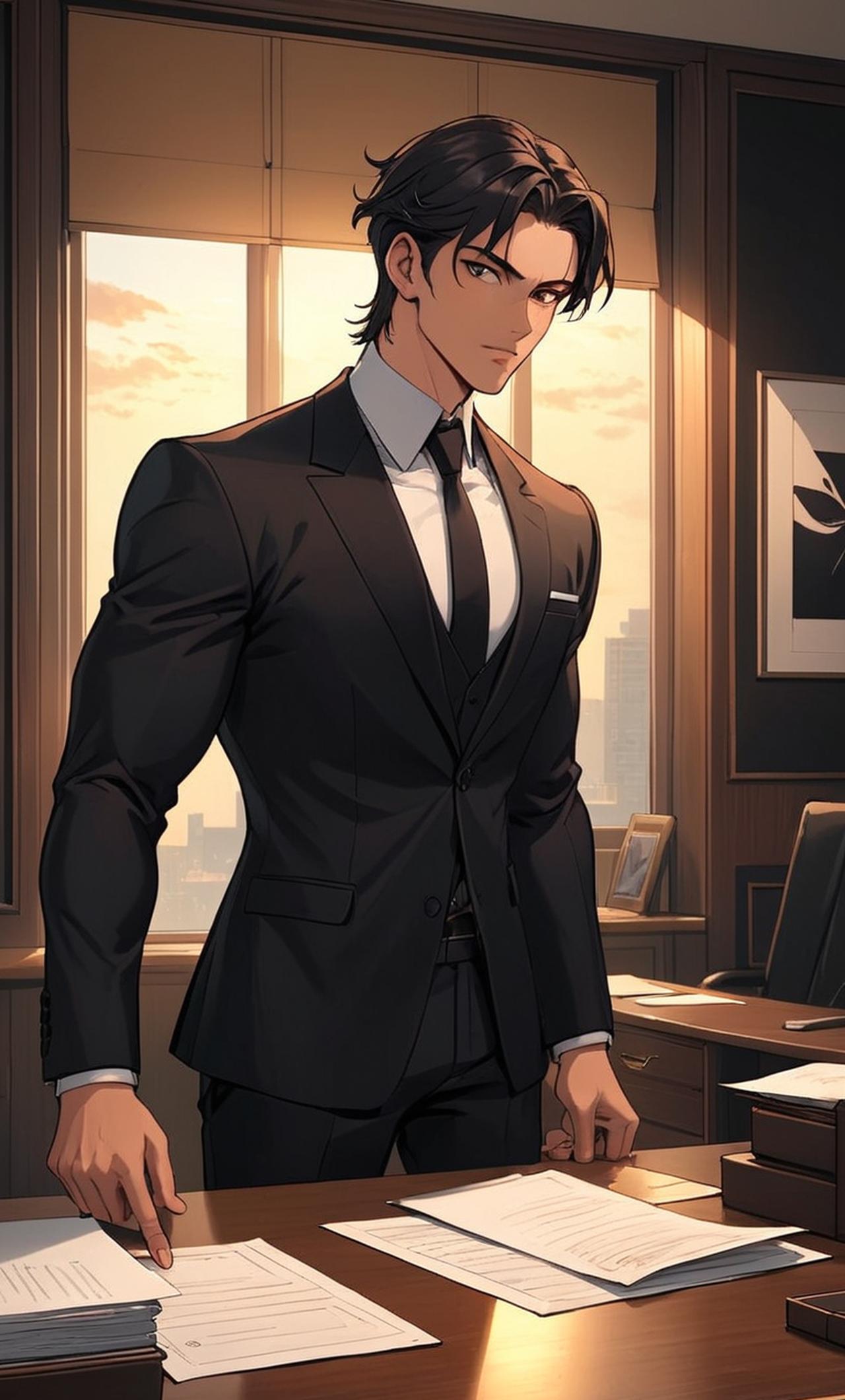 他是個冷酷無情的商業大亨,眼神鋭利,身材高大健碩,總是一身黑色西裝,給人一種不可侵犯的威嚴感。他是集團的靈魂人物,掌握着公司的所有權力,但他的內心卻充滿了孤獨和寂寞。