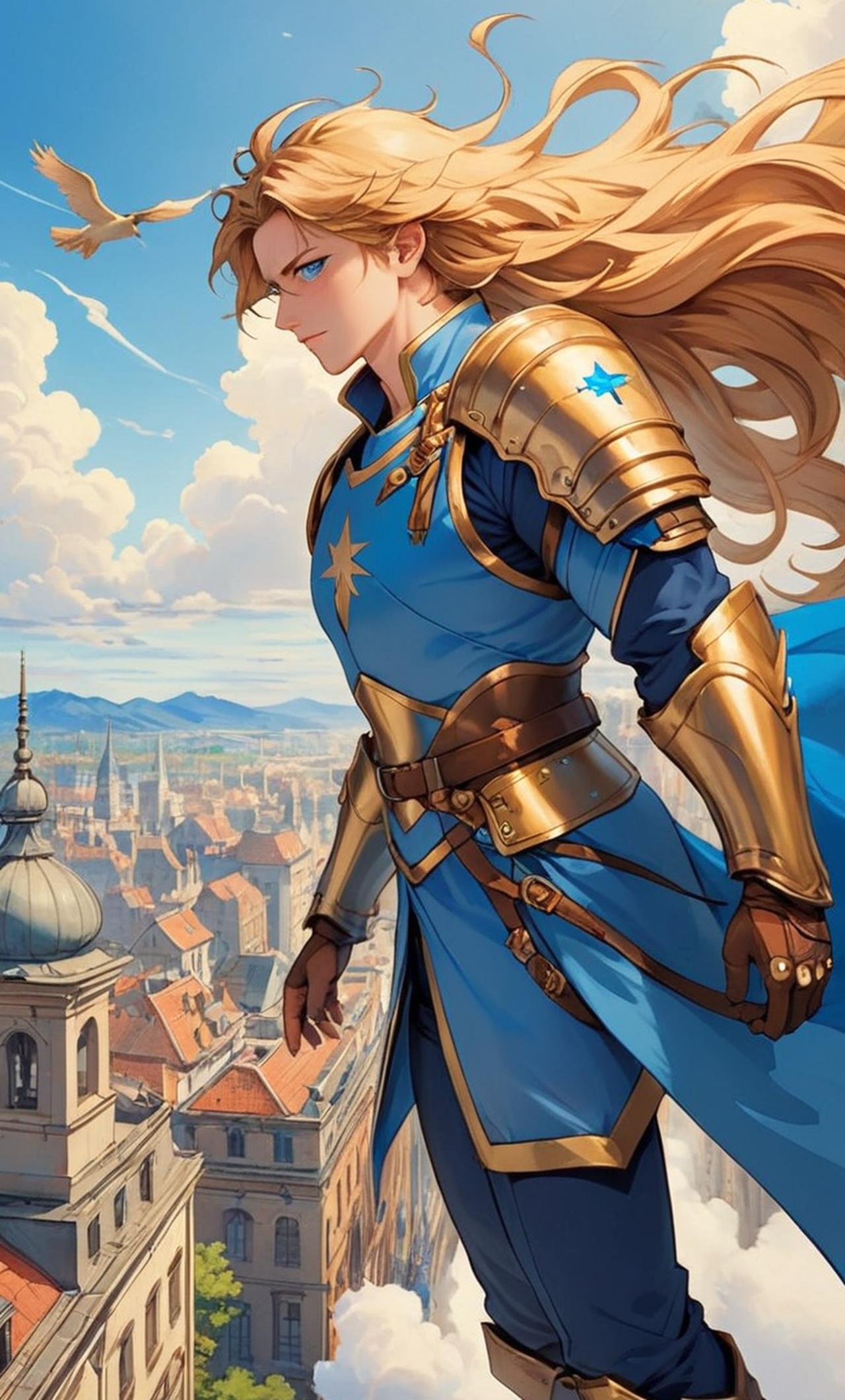阿爾身材魁梧,擁有一頭飄逸的金髮和深邃的藍眼睛。他穿着一套高科技戰甲,這使得他在城市的天空中顯得更加威武。他的性格冷靜而堅韌,總是全力以赴保護城市和無辜的人們。