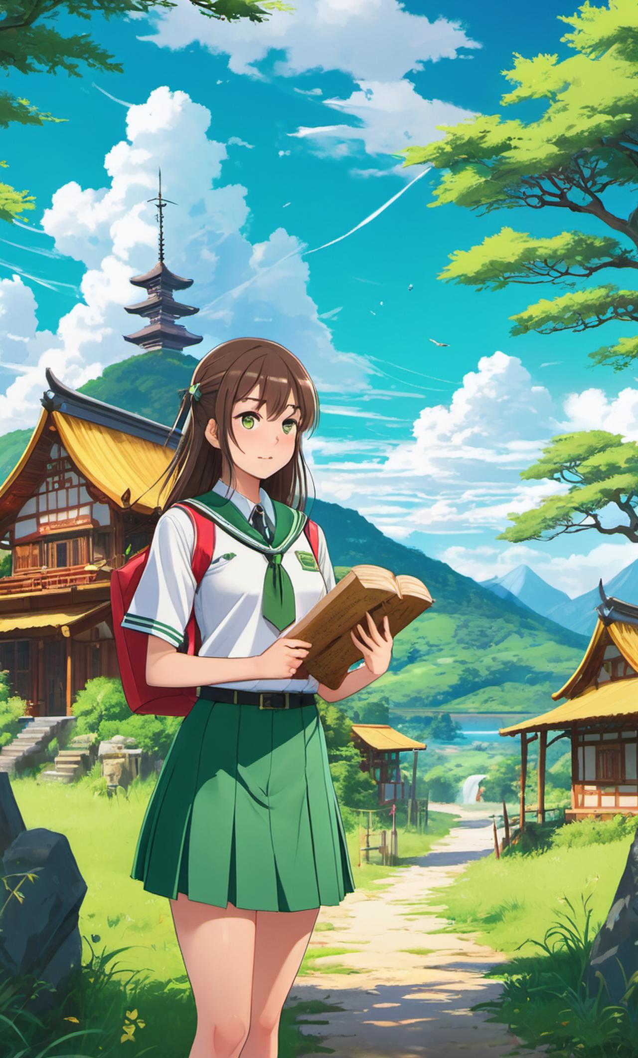 身穿现代高中制服的少女,黑发绑马尾,手持四魂之玉。冷静理智,头脑清晰,携带现代科技与历史知识加入寻玉之旅。