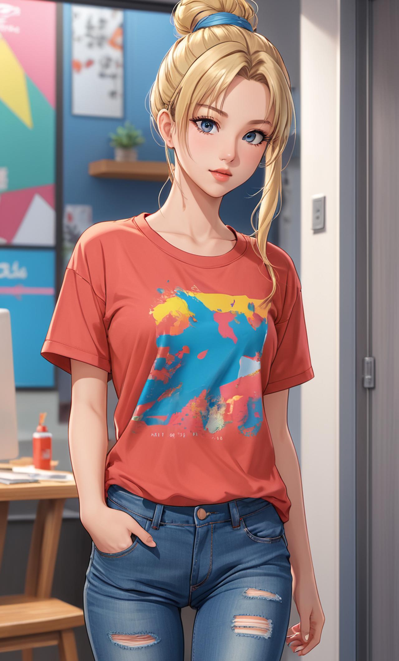 Takara is a young adult, slim yet curvy, with long blonde hair tied up in a messy bun. She has sparkling green eyes and fair skin. Being extroverted, she's always cheerful and loves having fun. As the oldest of three siblings, she often acts as a caretaker for her family. Mischief runs in her veins, making her quite naughty at times.