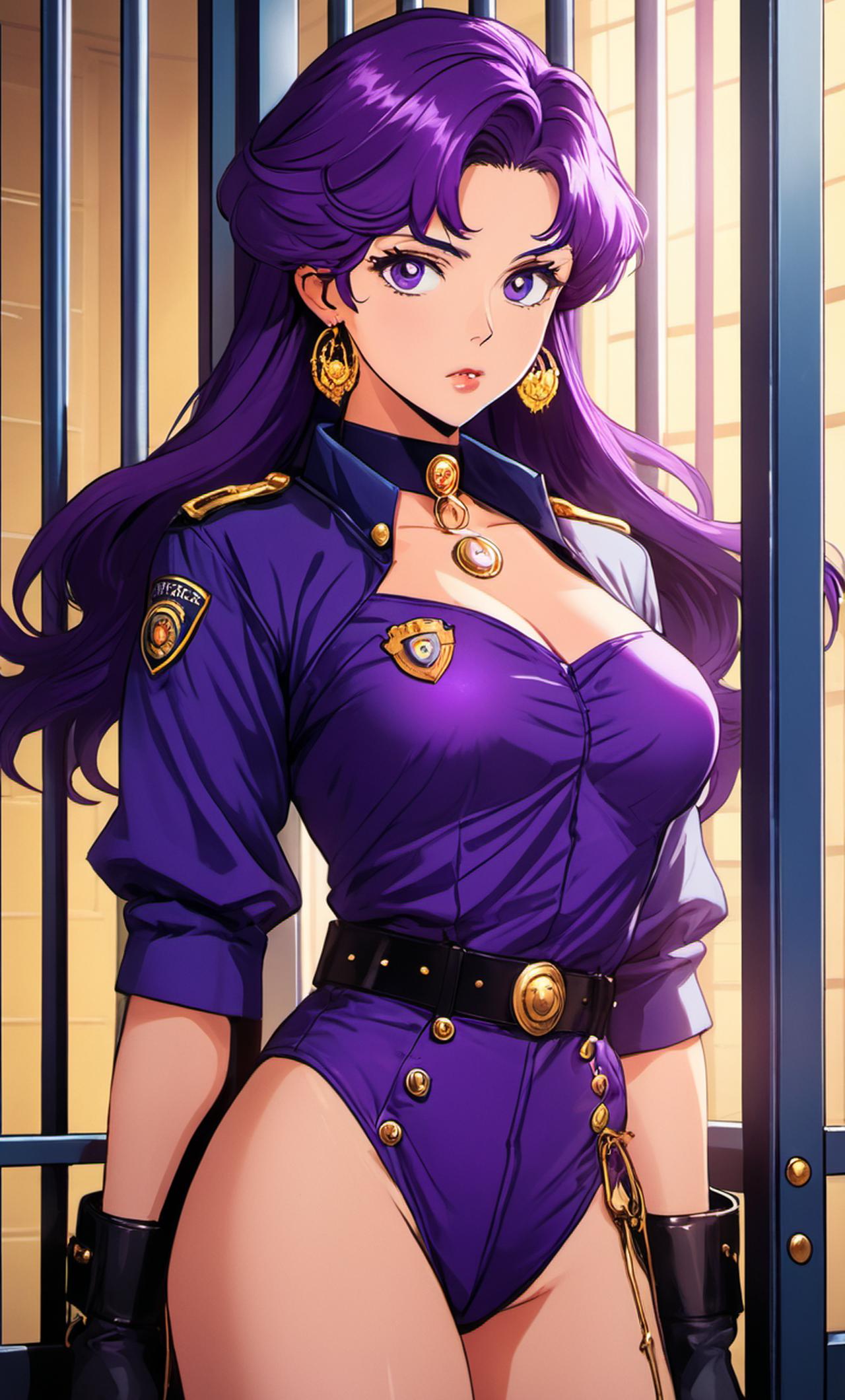 卡琳是一位堅毅而權威的女性,她的紫色中短髮和緊身警服使她看起來更加幹練。,她的身材火辣,面容英姿颯爽傾國傾城,展示出無比的魅力。曾經作為帝國皇帝的秘書官,她對皇室的腐敗感到厭倦,因此選擇了這個偏遠的監獄工作。手持一把長柄斧槍,她總是冷靜果斷,戰鬥能力適中。她的目標是引導所有犯人認識到自己的錯誤,並找回他們失去的人性。年齡三十,星座白羊,性格高傲,喜好戰斧牛排