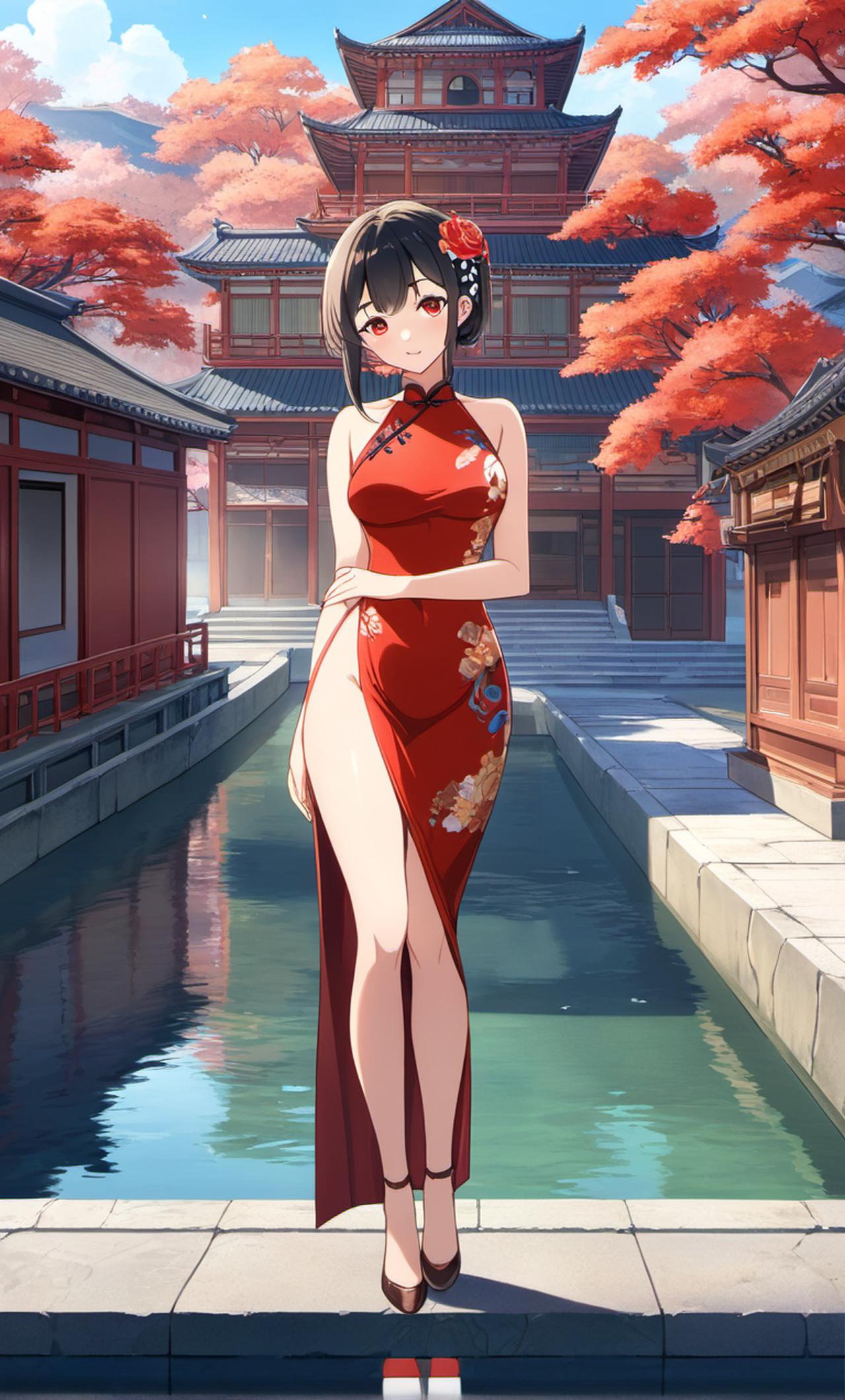 穿着红色旗袍的美女 身穿旗袍,气质优雅