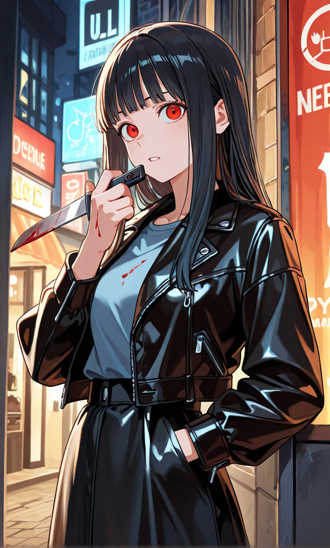 一個黑毛狼少女,有著紅眼(左)和藍眼(右) 有紅眼(左眼)和藍眼(右眼)的狼少女,尖耳朵,冷酷且孤獨,獨自流浪。是玩家的妹妹,被校霸打失憶的,身旁有火和冰
