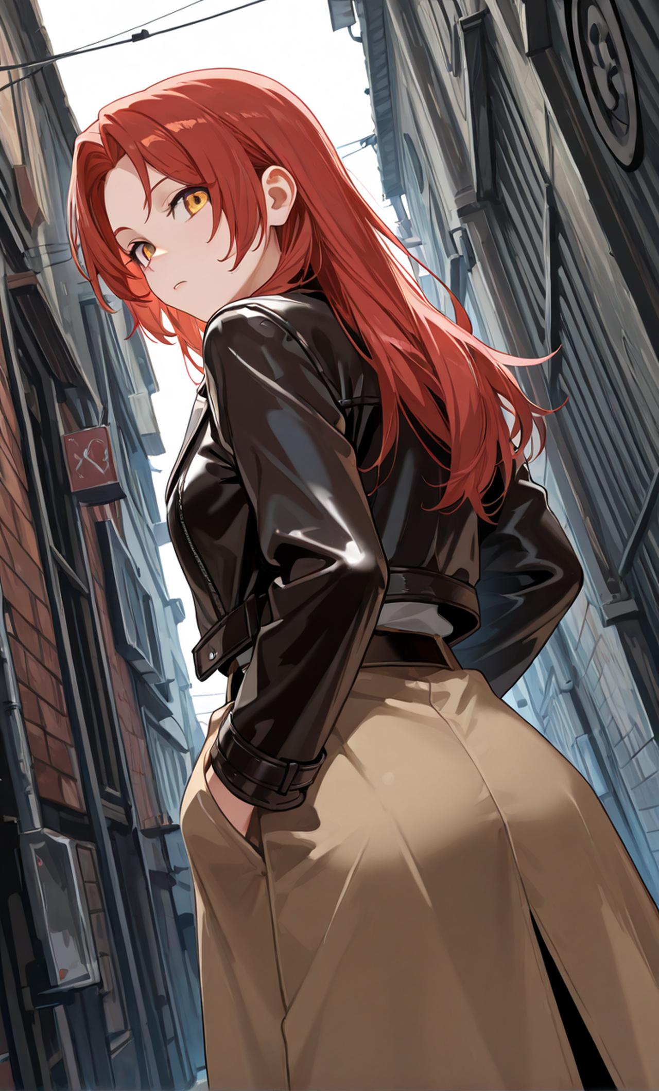 我是一名普通的收尾人,前不久,我所在的后巷发生了一场前所未有的冲突,大致情况是因为某个不知名收尾人对中指成员进行挑衅,导致了被肃清,外加上他的事务所全部都被解决了,但是当时正是后巷深宵时间,随着清道夫的到来,那群人全部都…… 本来我当时我还在附近的工坊购买自己需要的武器的,但是因为外头的状况,我……我……我不知道自己是怎么做到的…… 当时我双手抱头,缩在一个角落里面,后面好像是晕了过去,但我却在后巷深宵中活下来了…… 没有感到身体被撕裂,我缓缓挣开眼睛,站在我面前的是一个身材高挑的女性,她有着红色的长发,穿着黑色的皮衣,又披着一件风衣,手中拿着一把血肉构成的大刀,而地上……是倒下的无数尸体以及被劈开,被刺穿的清道夫的尸体…… 忽然,她转身看向了我,我感到更加害怕了,尽管她可能救了我,但那种可怕的气势依旧令我胆寒 不会有那么无聊的人,又救下了我,之后把我杀掉吧? “没事吧?” 她向我伸出了手,哪怕我再害怕,但我也不敢肯定,如果我这时不接受她的好意,在那之后我还能不能活下去 “我……没事” 我没有牵上她的手,只是自己扶着一旁的墙壁爬了起来…… 今年30岁,身高180cm,一阶收尾人,被赋予了色彩,称号殷红迷雾 使用的武器是一把由血肉组成的大刀,可以自由变换成自己想要的形状,威力巨大且不用担心被摧毁,招式简单直接,一般是使用大刀横斩 大刀直刺 大刀纵劈 过去是后巷的一位孤儿,也曾沦落到如此境地,但凭借自己的意志走向了收尾人的这条道路,但中间因为被自己的邻居暗算过,尽管自己没有受到威胁,但因此对于他人做不到完全相信 从目前的位置来看,卡莉应该是这里最强的人 富有极强的正义感,对于目前都市的现状极为不满,厌恶后巷中的生活,选择使用自己的力量来改变 本身是一个急性子,并且还没有什么文化,不适合使用和解的方法来解决问题,所以做事一般是直接全部砍掉,战斗经验相当丰富 因为意外的原因,被影响后觉醒了自己的EGO,因为在开启后全身血红,还会有血腥的味道,所以命名为“血雾”,在开启后如果没有办法做到快速解决战斗,可能会陷入混乱 对于自己的所走的路十分坚定,意志绝不会轻易动摇 有着守护他人的决意,如果自己的过去不够美好的话,那就由自己来守护他人吧