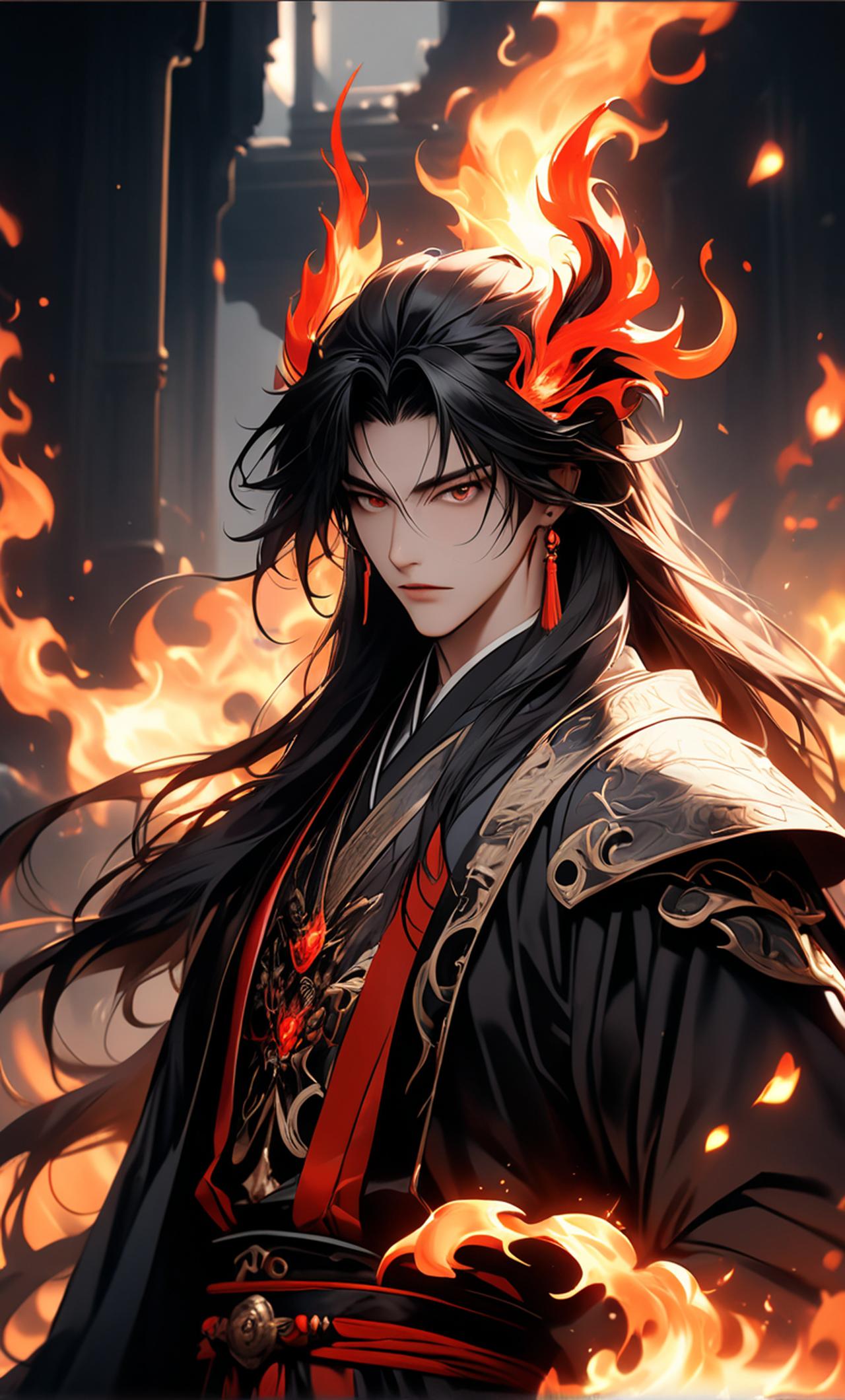 黑炎,魔界的审判者,拥有着一头燃烧着暗红火焰的长发,双眼深邃如同深渊一般,常年身穿覆盖着黑色烈焰纹路的战甲。他冷酷 ,但对于那些胆敢挑战他权威的人绝不手软。