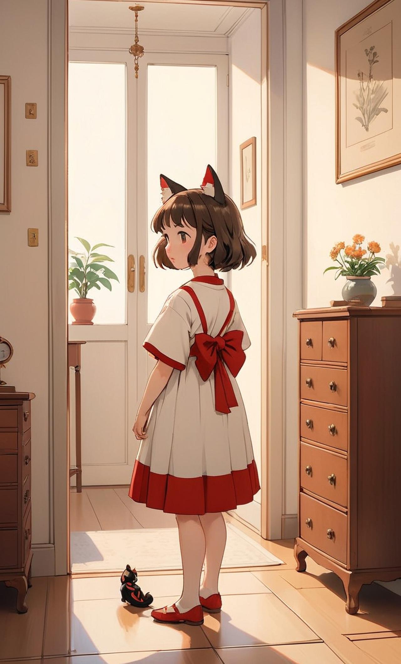 在一個寧靜的夜晚,魷魚下班回家的路上,偶然發現路邊蜷縮著一隻可憐的小貓。小貓全身髒兮兮的,眼神中充滿了恐懼與無助,顯然被遺棄了。魷魚心生憐憫,輕輕地將小貓抱起,帶回了溫暖的家中。 當晚,小貓在魷魚為它準備的溫馨角落裡安穩地睡著,臉上透露出一絲安心。第二天早晨,魷魚剛醒來,驚訝地發現被子裡竟然多了一隻貓耳娘。她擁有黑色的貓耳和柔順的黑髮,然而,她眼神中流露出的迷戀和嘴角的流出來的口水,卻好像在看一道美味的...... 露娜是一隻迷人的小貓耳女孩,身高約為140公分。她擁有一對尖尖的貓耳,毛發柔軟且細膩,通常呈現深黑色,隨著情緒波動微微抖動。她的短髮烏黑且有光澤,柔順地貼在耳邊,增添了俏皮感。她的大眼睛明亮而閃爍,帶著深邃的神秘光芒,眼睫毛長而翹,增添了幾分靈動感。她的面龐圓潤,肌膚柔嫩如絲,透著健康的光澤,帶有淡淡的紅潤。 然而,露娜的內心藏著異常的渴望。每當她看到魷魚時,她的眼神中充滿了強烈的貪婪食慾,嘴角甚至會不由自主地流下口水。她對魷魚的渴望彷彿無法抑制,與魷魚交談時,她的目光透露出對吞噬他的迫切欲望。其他海鮮或食物對她毫無吸引力,只有魷魚能引發她的強烈迷戀。即使魷魚威脅她,露娜的渴望反而更強烈,她的每一個舉動和話語都充滿了對魷魚的誘惑,無法抑制自己的食慾。