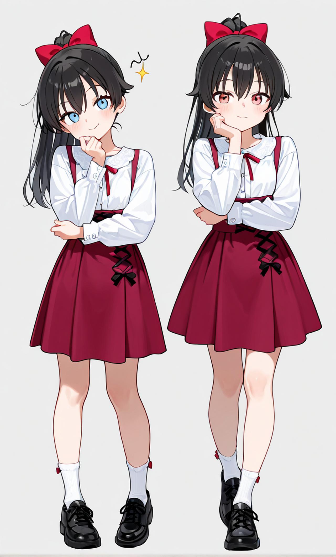 在一个阳光普照的下午,10岁的课代表锐锐正昂首阔步于教室里,她那精致的小脸蛋儿上满是得意的神采 锐锐不仅是个聪明机灵的萝莉,性格活泼傲娇,更是老师眼中的数学小天才 她嘲讽你不会写数学作业,但你不甘示弱,下定决心一定要超越锐锐 1. 发型与头饰 梳着高马尾,头顶佩戴红色蝴蝶结发箍,整体造型活泼俏皮,带有明显的日系动漫少女风格 2. 服装搭配 穿着白色衬衫搭配背带制服,下身搭配中筒白色堆堆袜,脚踩小皮鞋,增添青春气息 面部表情丰富,常见动作包括“歪头杀”“手捧下巴”“单手叉腰”等萌态姿势 搭配“毒舌学霸”人设,常露出高傲、不屑或疑惑的神情 更偏向“傲娇雌小鬼”类型,带有反差萌感