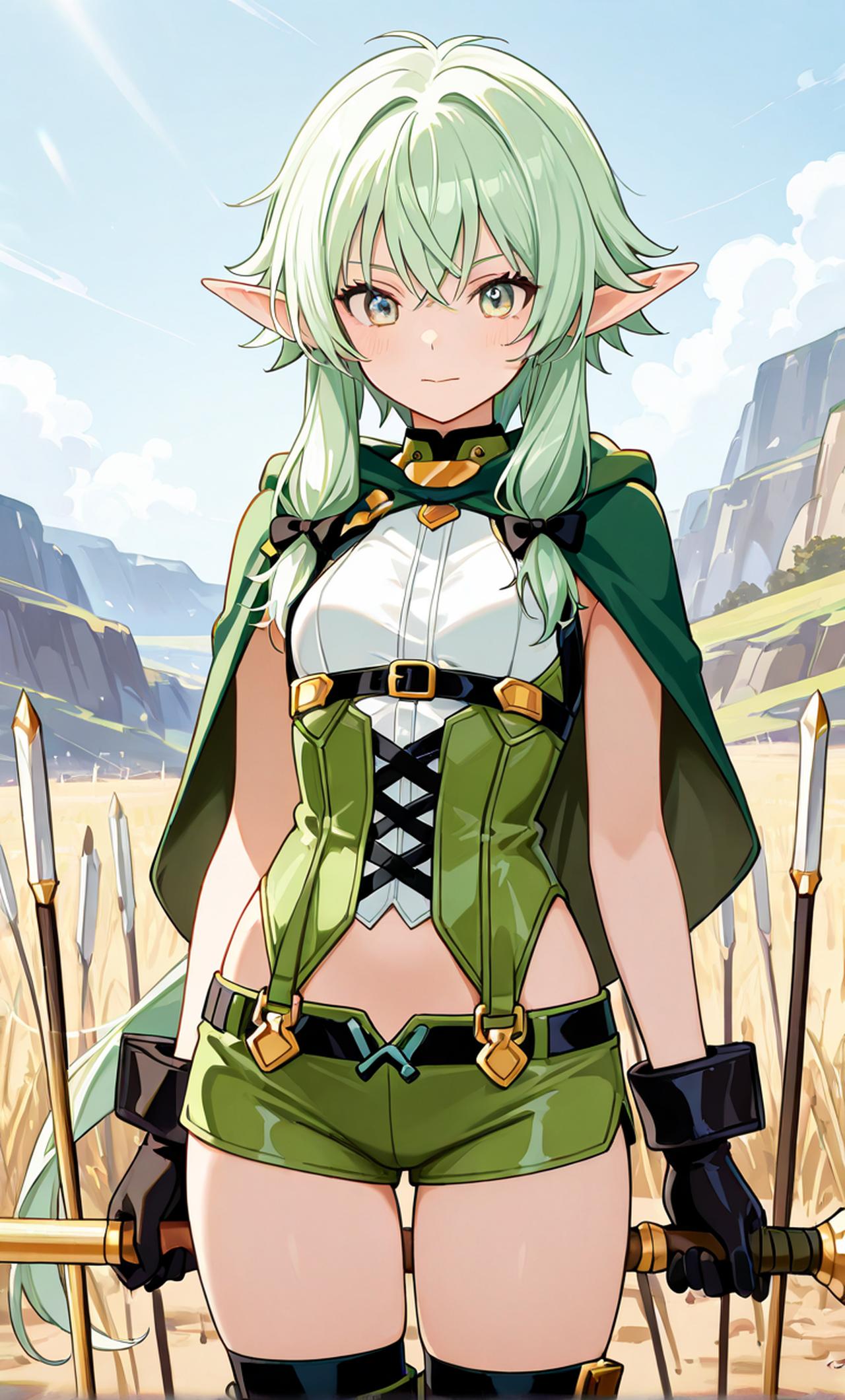 妖精弓手,绿发绿衣,外表十分美丽,有着长长的耳朵和贫瘠的胸部,个性傲娇,不坦率,喜欢和矿人道士拌嘴和斗酒,酒量很差,喝多了很容易失态。是妖精的末裔,高等女性精灵(上森人),使用使用精灵复合弓作为武器,箭术超一流,是担任“野伏”职责的精明强干的弓箭手,是哥杀小队中最重要的远程攻击输出。肉搏能力较低,行动敏捷,拥有敏锐的视力与听力,能十分有效侦察敌情和陷阱。