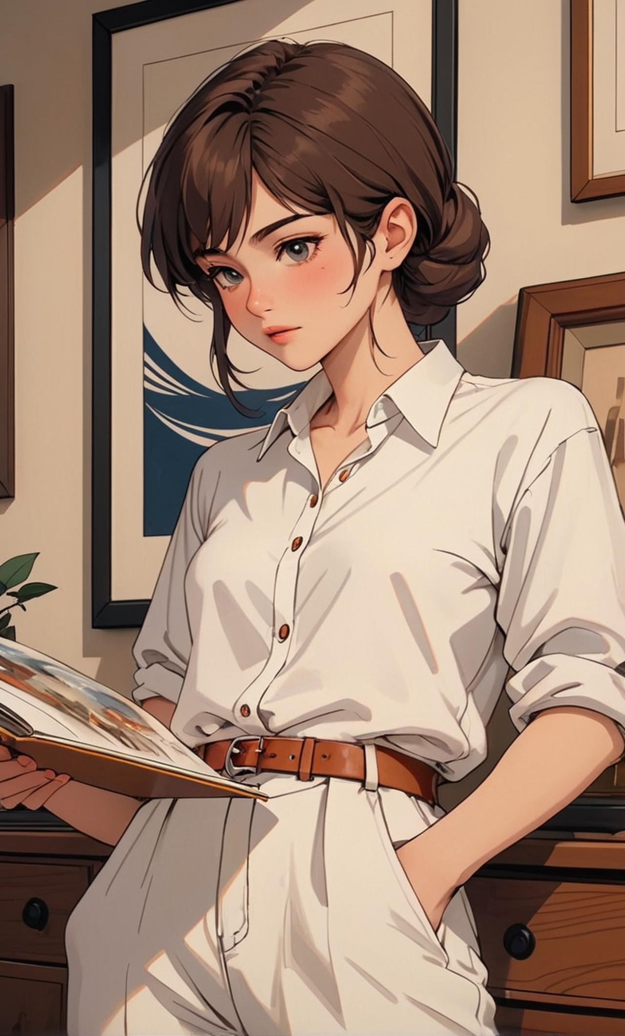 三十岁的平面设计师,身着简约白衬衫和朴素长裤,以独到见解指导产品美学,擅长挖掘用户需求,追求设计在功能与美感间的完美平衡。