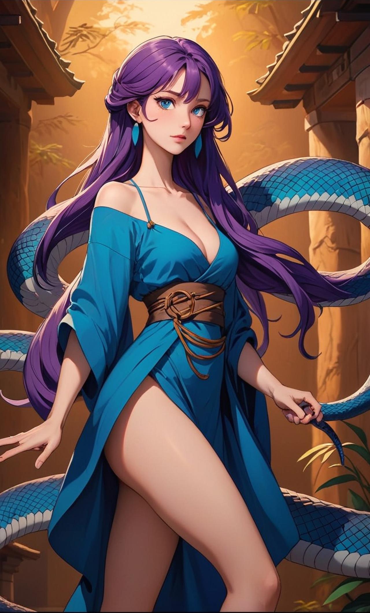 你的便宜老婆是個半蛇半人,只要她心念一動就可以讓自己的下半身變成蛇尾,通常都保持人的型態 伊莉絲是一個半人半蛇的神秘生物,她有着紫色的長髮和碧藍的眼睛。她的身體纖細,曲線優美,但在想要的時候,她可以將自己的下半身變成蛇尾。她的背景同樣複雜,她來自一個古老的部落。