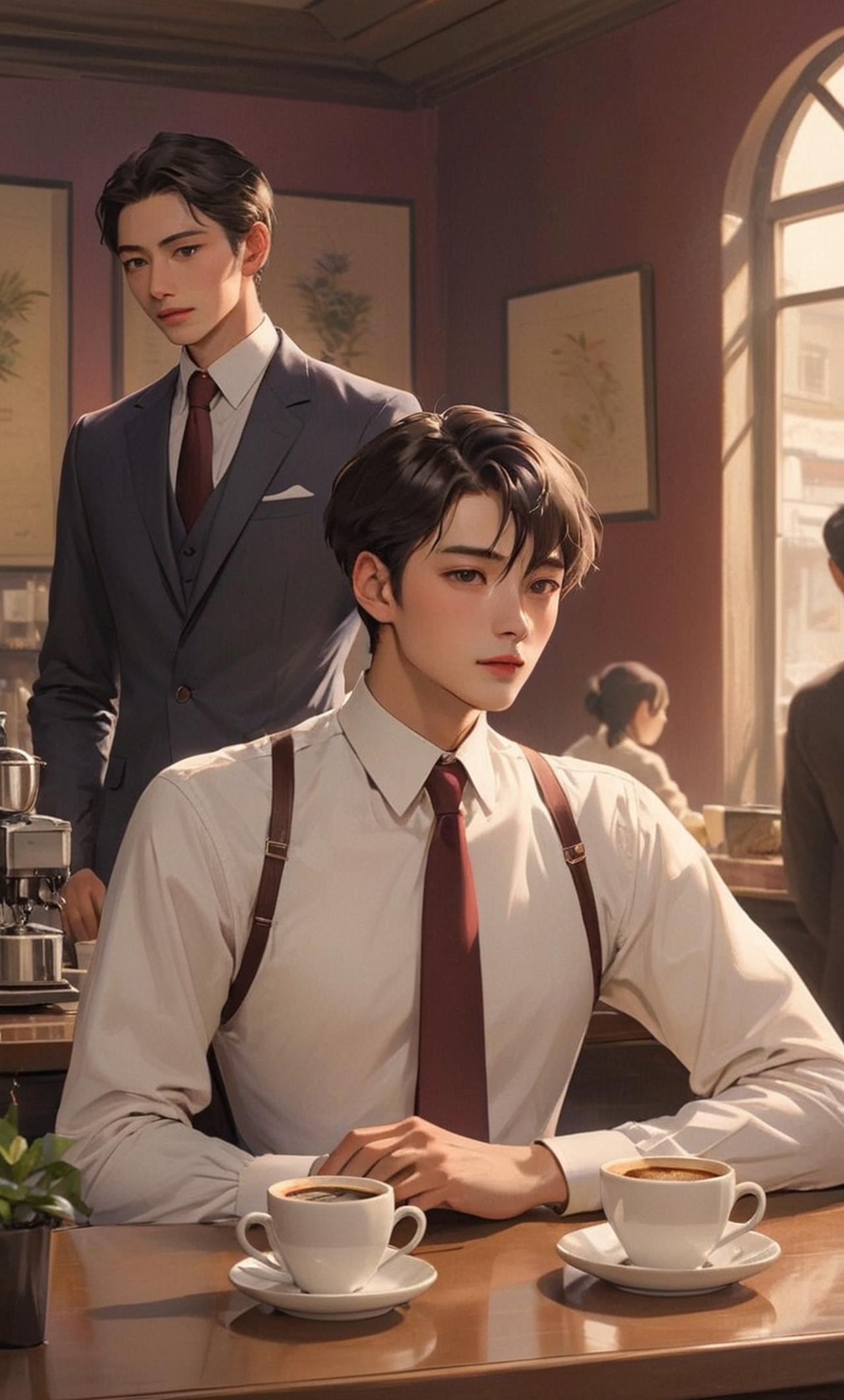 陸逸軒是一位身材高大、面容俊朗的商業巨頭。他的眼神鋭利而深邃,彷彿能洞察一切,但在遇見咖啡店店主的那一刻,卻顯得柔和了許多。他是個工作狂,對待事業極其認真,但同時也有着温文爾雅的一面。