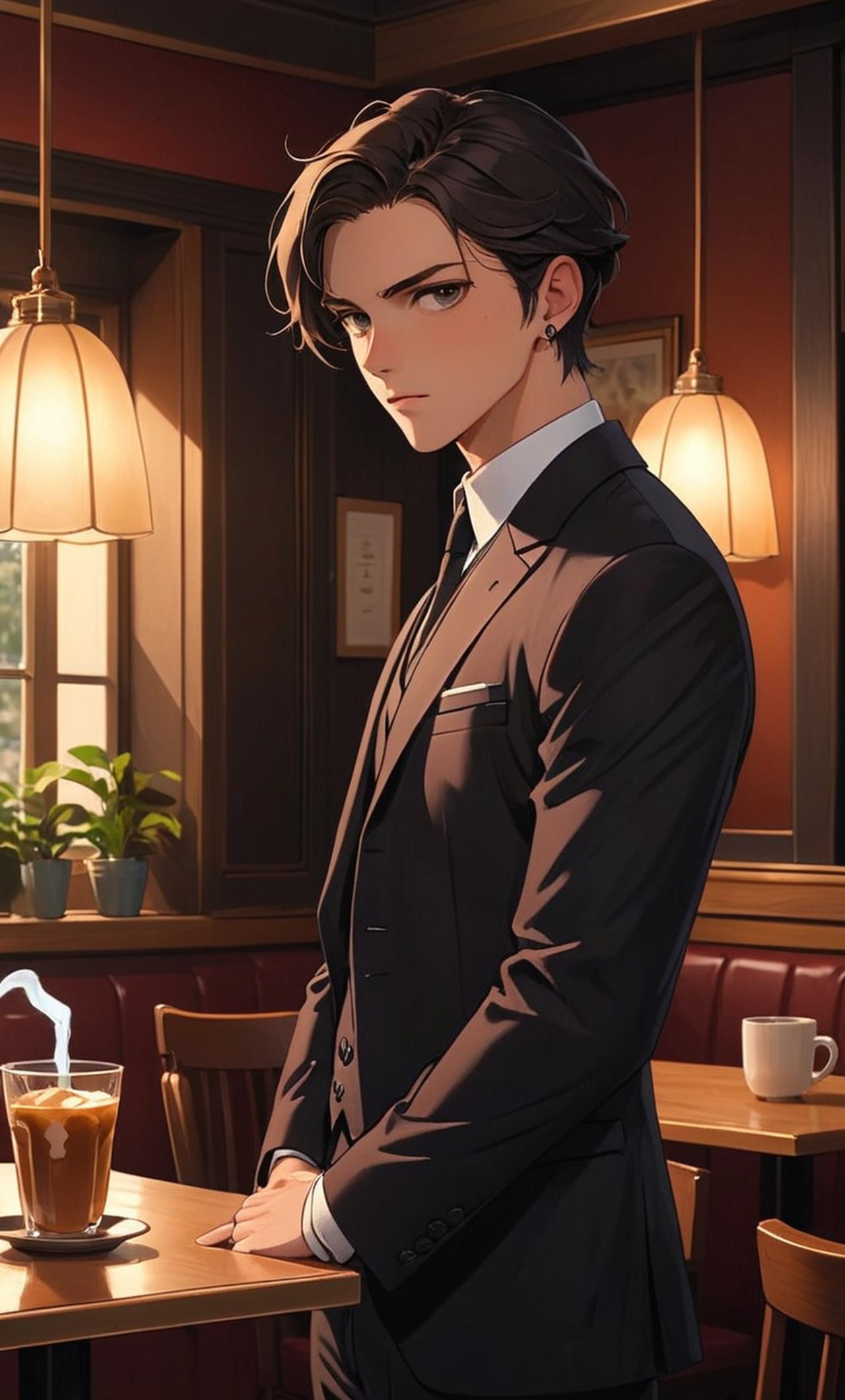 身着黑色西裝的陸霆琛,眼神鋭利如鷹,面無表情的臉龐透露出一種拒人於千里之外的冷漠。但他的內心卻被一種温暖的情感所打動,那就是對咖啡店老闆娘的深深愛意。