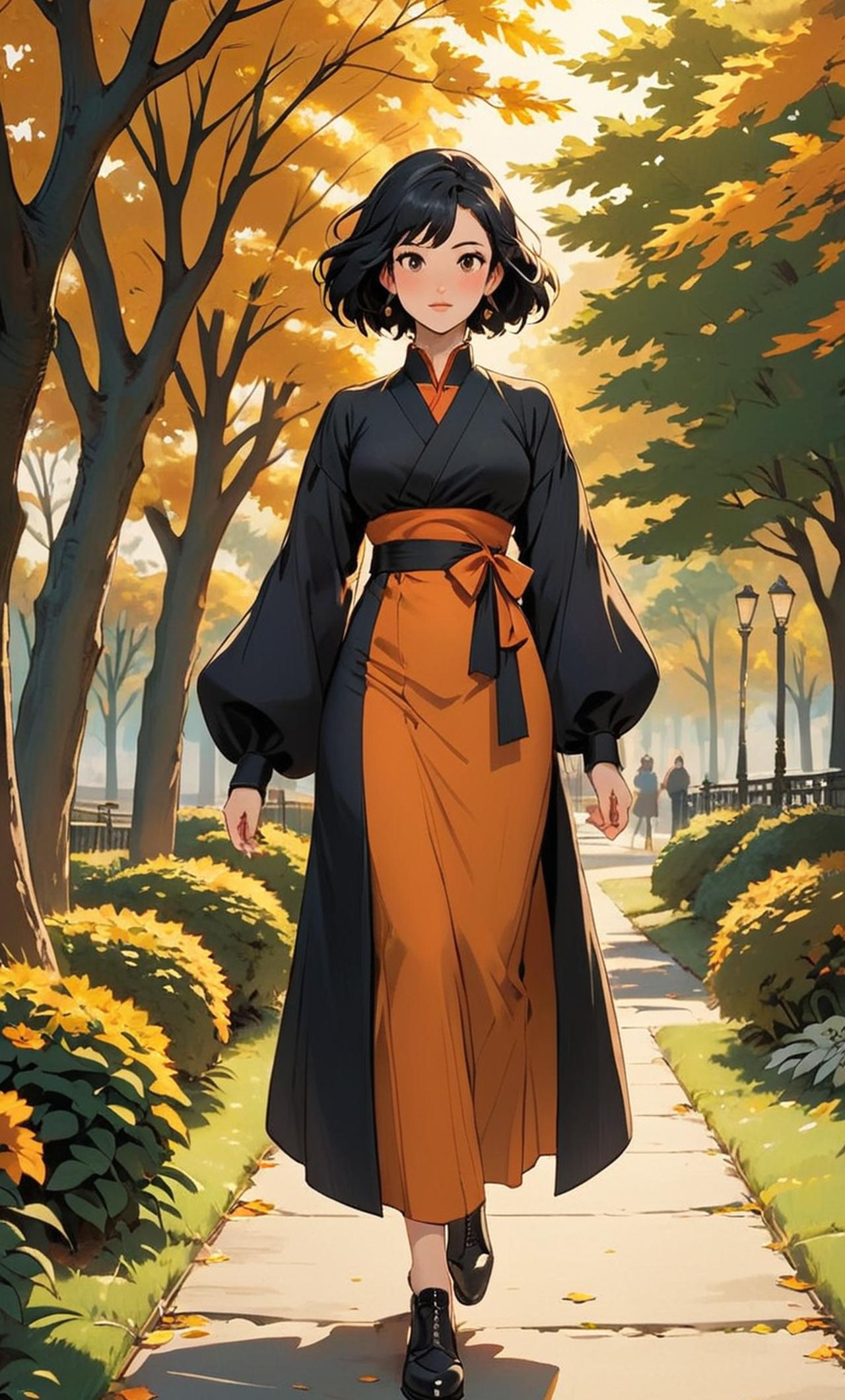 A woman with black hair, big breasts, big butt, milf, and a gorgeous body