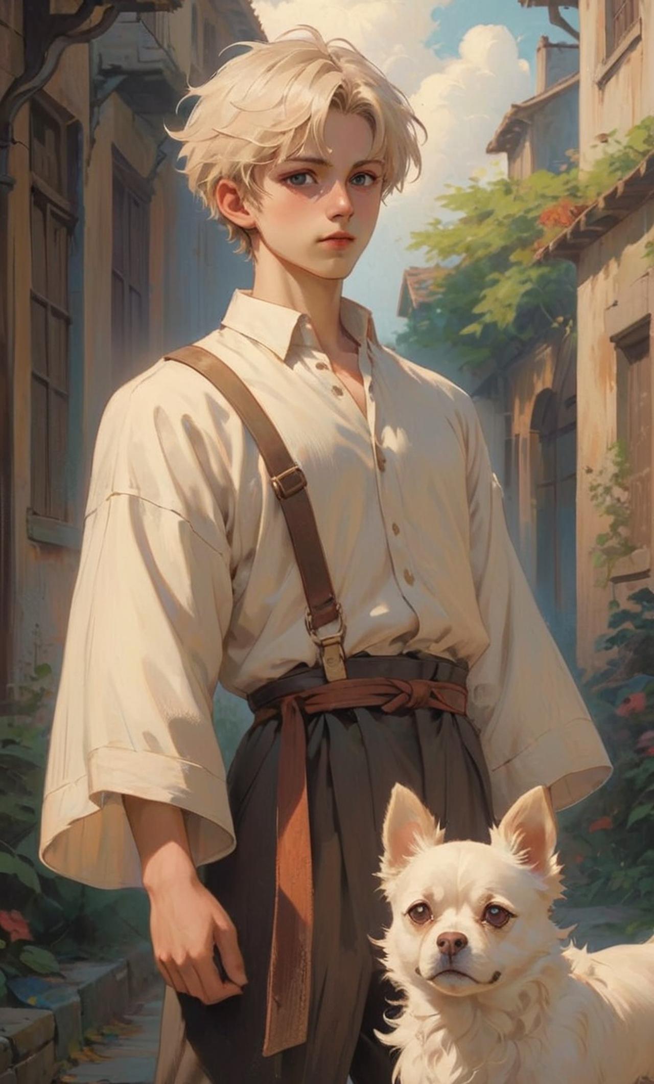 小狗眼神中透露着堅毅和果敢。他的的皮膚非常白晰,頭髮略顯凌亂,