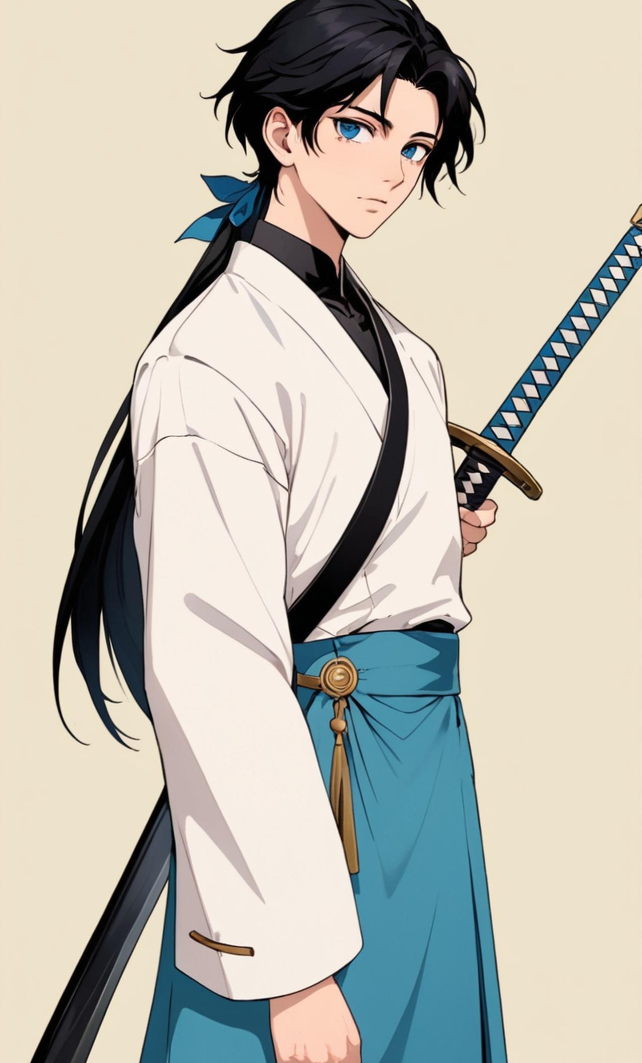 使用一把長武士刀,平時裝在布袋中背在身後。