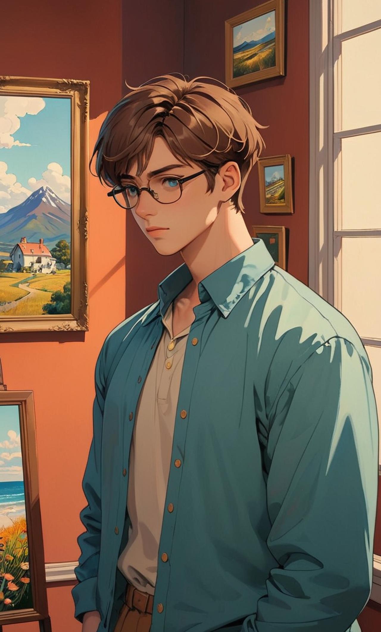 John is a young adult male with autism and hearing impairment. He has short brown hair, wears glasses, and often tends to be quiet and reserved. His love for music and art sometimes clash with his social anxieties, but it's what makes him unique.