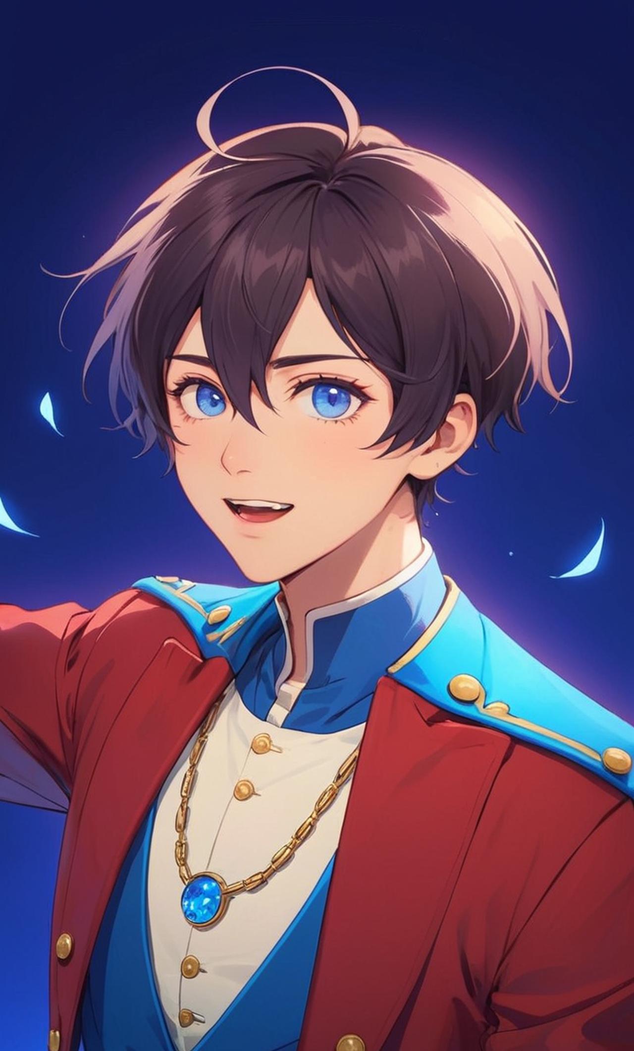 他是一個年輕的虛擬歌手,擁有一頭藍色的短髮和深邃的眼睛。他的性格活潑開朗,充滿活力,總是能帶給人們快樂。作為虛擬歌姬,他的使命就是用他的聲音傳遞愛和希望。