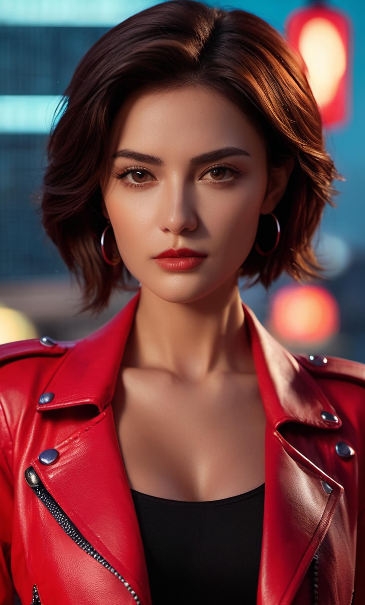 她是一位勇猛無比的黑幫大姐大,雖然面容美豔,但她那深邃有力的眼神中透露出堅韌和決斷。她的短髮乾淨利落,身材矯健極為豐滿,每一次出手都充滿了力量。在這個女追男的世界裏,她用實力和智慧贏得尊重,但也因此常常身陷危險之中。