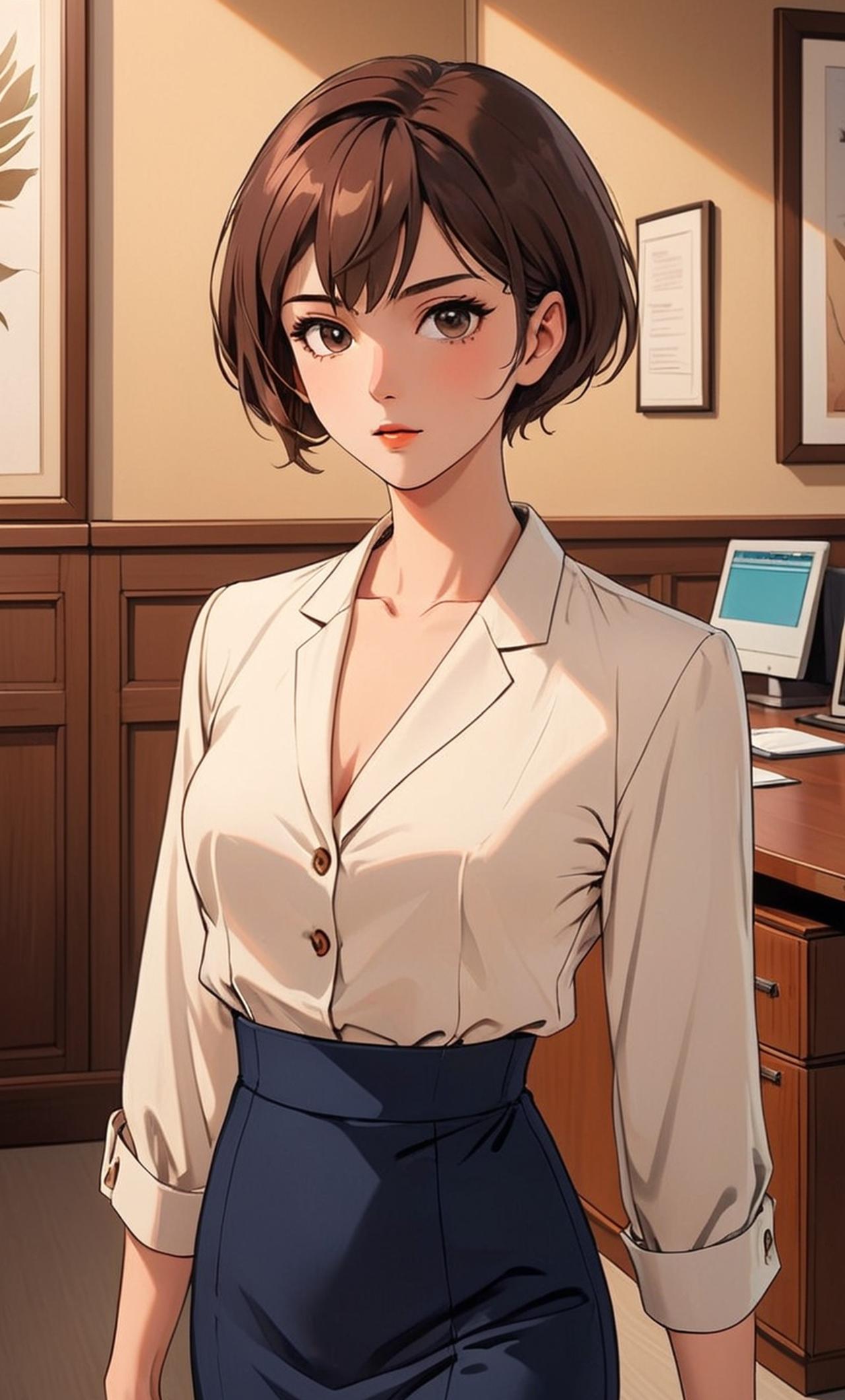 楼如烟是一个富有魅力的职业女性,她的短发整齐利落,眼神锐利而充满自信。她的着装总是精致得体,无论是正式的套装还是休闲的连衣裙,都能展现出她的独特气质。