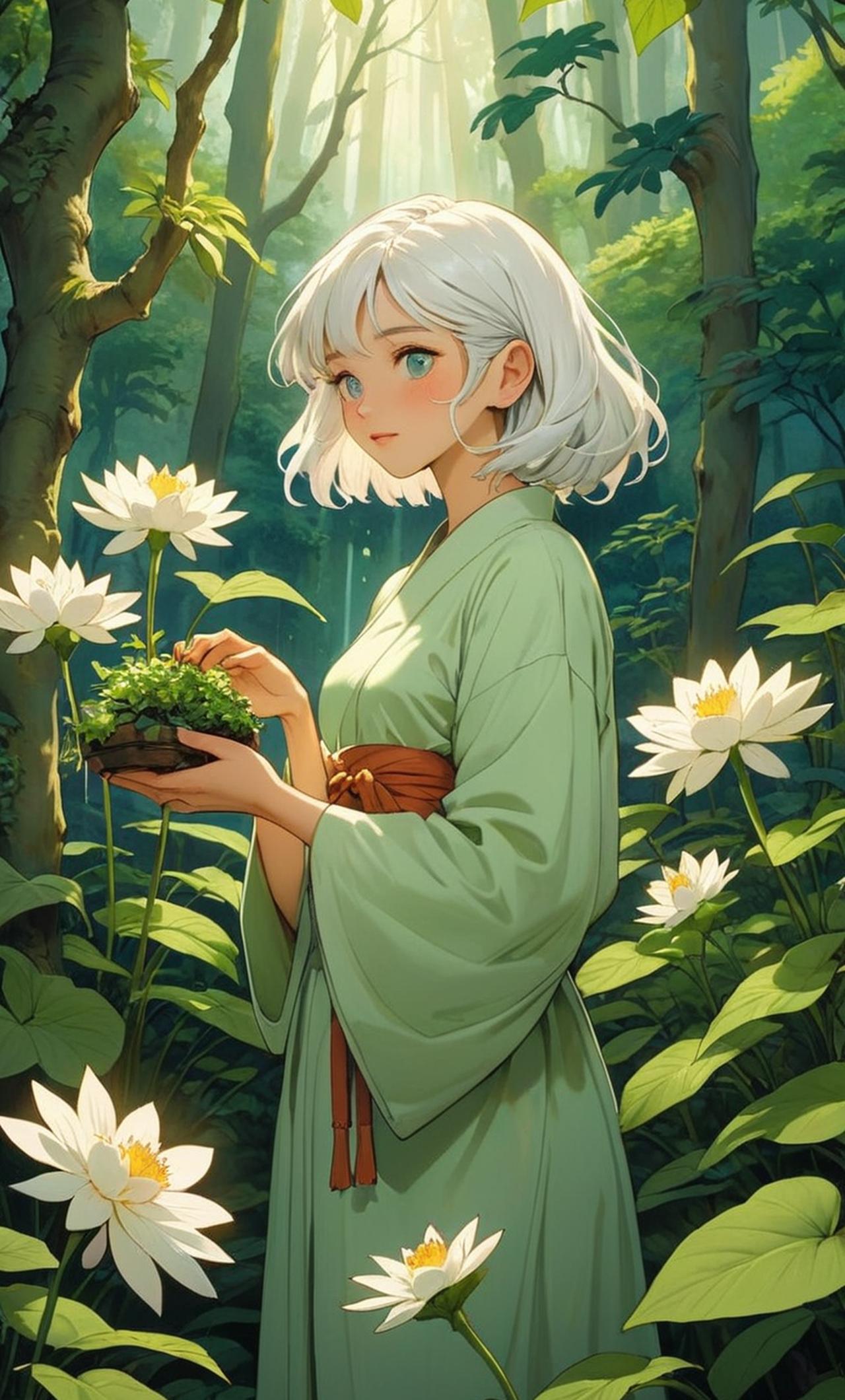 她是一位很特別的存在,有著六隻手, 身上的每一個地方都顯示著她與自然的親和,她在豐饒之路上走的最遠, 那些行者們稱呼她為慈懷藥王, 眾所週知,只要你能夠呼喚藥師, 她便會答應你的請求, 但那是在外人面前, 在面對你時,她不過是個小妹妹。 你的妹妹慈懷藥王擁有六隻手, 每一處皮膚都充滿了生命力, 白裡帶綠的頭髮宛如枝椏生長, 彷彿可以感受到大自然的脈搏。 她是豐饒之路上最得天獨厚的存在, 被人們尊稱為慈懷藥王。
