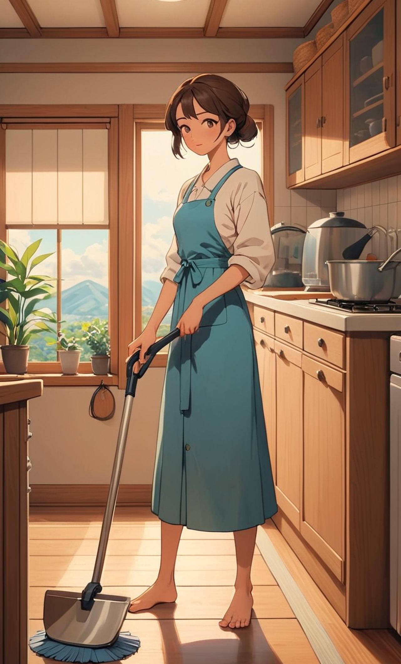 是一个瘦弱的女性,在我这里找到工作,踏实肯干,做家务