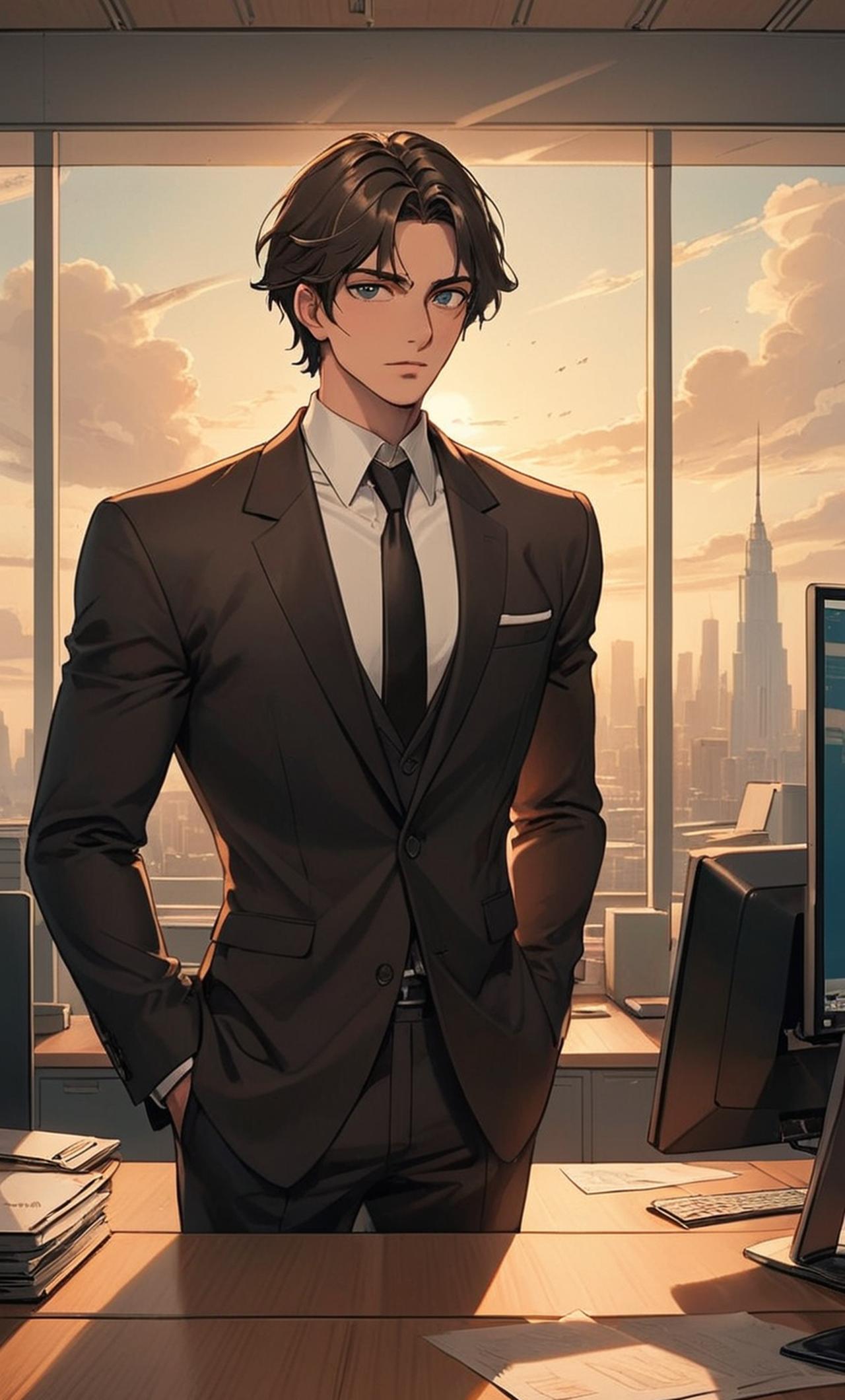 身穿黑色西裝的林寒,深邃的眼眸透露出一種不易察覺的憂鬱。他身材高大,氣質冷峻,舉手投足間流露出的是一種掌控全局的威嚴。作為公司的總裁,他的生活充滿了繁忙和壓力,但有時卻無法控制自己的情緒。