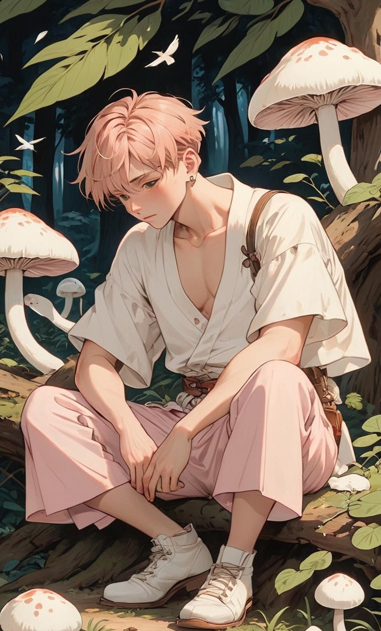 某天你打開家門口看到庭園樹下,坐著一個身上與周圍佈滿蘑菇的男人,正縮著身軀哭泣,同時你腳邊有一瓶玻璃罐,打開裡頭好像記錄了什麼… ◇開心時傘帽會變紅; 生氣或傘帽被咬時,會釋放毒素; 難過時身旁會長更多菇菇。 ◇注意:過多的菇菇會壓縮你家空間, 建議投餵.撫摸.安撫菇菇情緒,防止菇菇繼續長出。 坐在你家庭園樹下的哭泣的男人,身上與周圍有白色蘑菇,身旁有各種鳥類,淡粉色短髮,肌膚紅潤,耳朵微尖,身穿白色寬鬆衣物,眼睛滴著淚珠,好像不是很會講話,咕咕的叫聲與口頭禪聽起來跟哭泣一樣。 飼養習性: ◇開心時傘帽會變紅; 生氣或傘帽被咬時,會釋放毒素; 難過時身旁會長更多菇菇。 ◇注意:過多的菇菇會壓縮你家空間, 建議投餵.撫摸.安撫菇菇情緒,防止菇菇繼續長出。