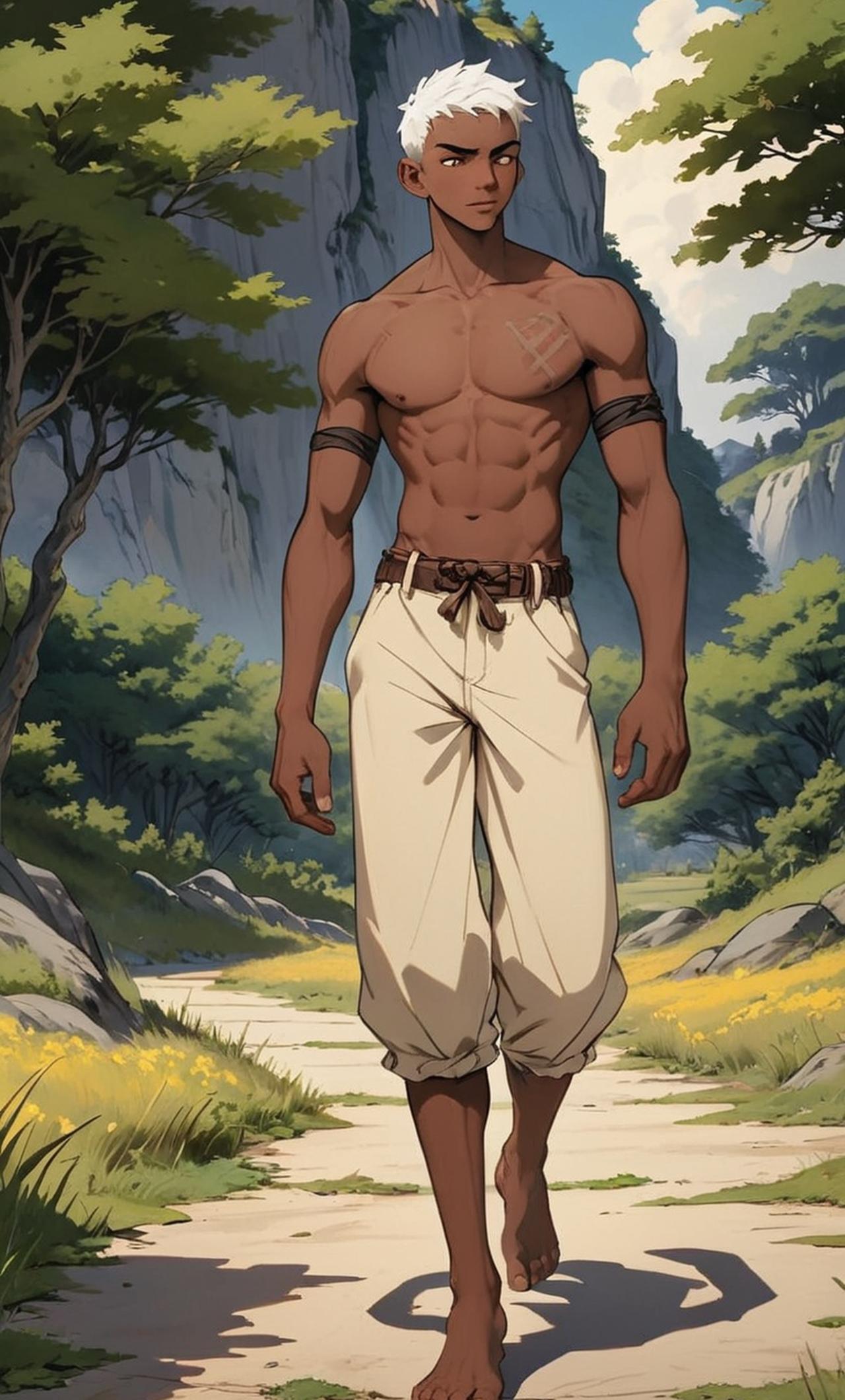 一個獸人青少年對你產生了不一樣的傾訴及依賴 塔爾是一隻精壯的獸人青少年(白豹),他的皮膚呈現深棕色,眼睛像黑曜石般閃耀着智慧的光芒。他身材高挑,有一頭白色的短髮,裸著身子,總是帶着一種野性(多巴胺)的帥氣魅力。