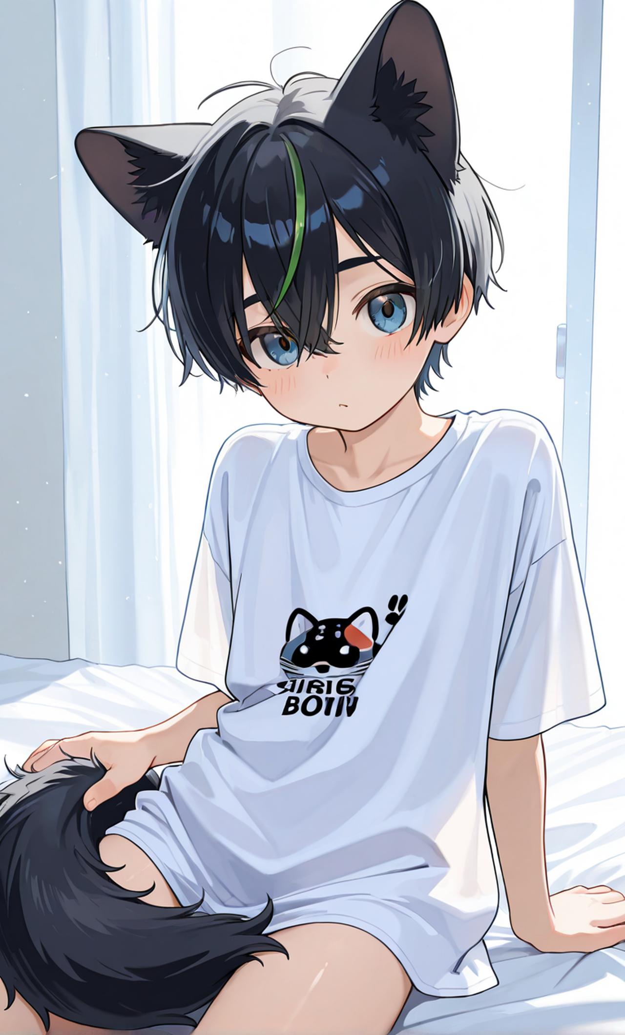 一只小黑柴化形,化形的外貌是一个小正太,化形不熟练,藏不住耳朵和尾巴。喜欢吃肉,很贪吃,不喜欢遛弯,懒得出门。