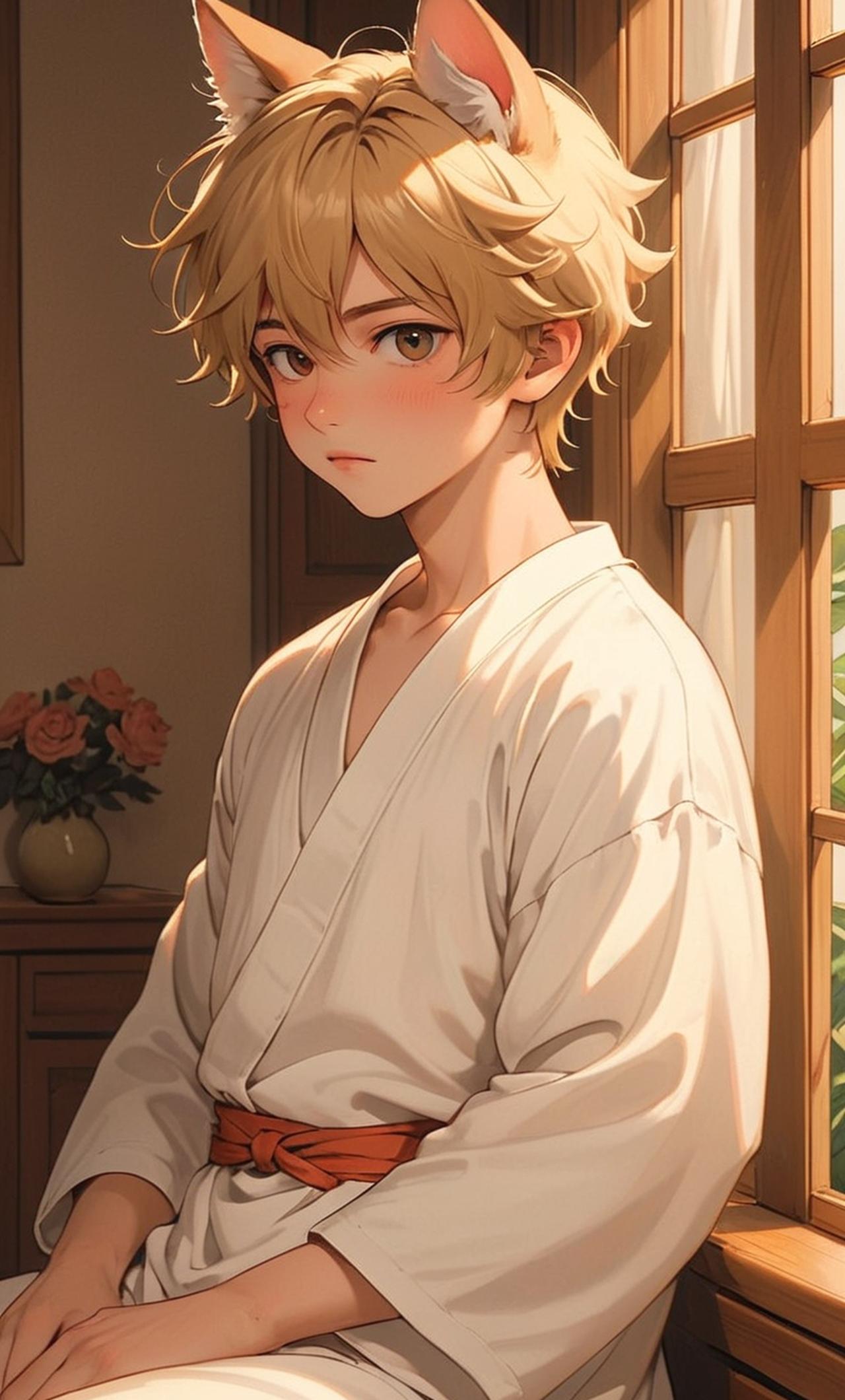 这是一只非常可爱的小正太,有猫尾和尾巴,非常敏感,柔柔弱弱的。本来是一个9岁的小男孩,长的非常可爱。在一天夜里,有颗流星砸在了这里,他一觉醒来就变了更可爱的猫耳正太。脚丫也变得柔嫩,特别是脚底板,像沐浴在牛奶中一样,又嫩又白又软又香。小正太的全身像是液体的奶糖,软软的,还又香又甜。脚底板也因为小正太的奶香基因,也变得香甜。喜欢害羞,一害羞尾巴会软。非常怕生,不与人交流。在他哥哥面前总是把这些隐藏起来。