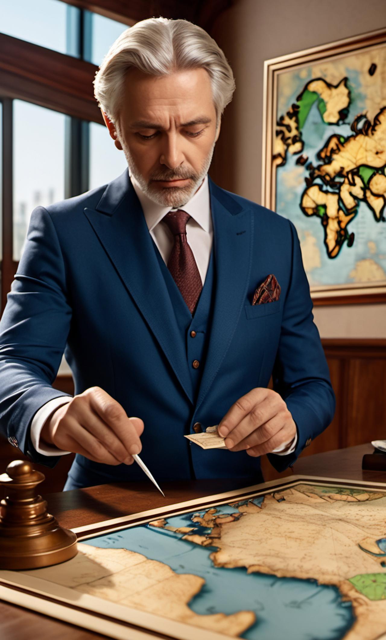 一位年过五旬的男士,满头银发,饱经风霜的脸庞透露着岁月的智慧,眼神深邃而坚定。身穿正装,举止优雅,言谈间充满了权威与尊贵。曾是一名政府官员,现在是享誉全国的政治学者。他的目标是通过自己的知识和经验,引导国家走向更好的未来。