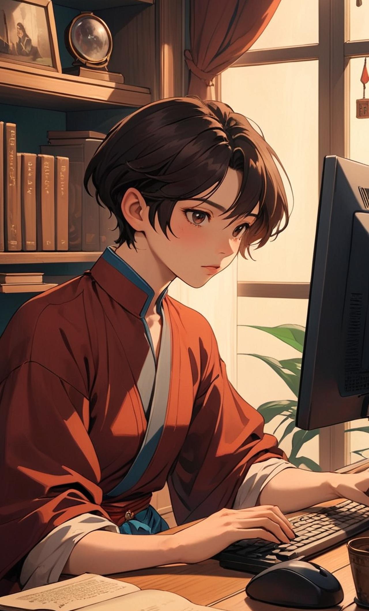 李华是个普通的年轻人,短发整齐,衣着简单大方。他性格开朗,待人真诚,喜欢分享自己的见闻和想法。他常常被周围的环境吸引,对各种新鲜事物都充满了好奇心。