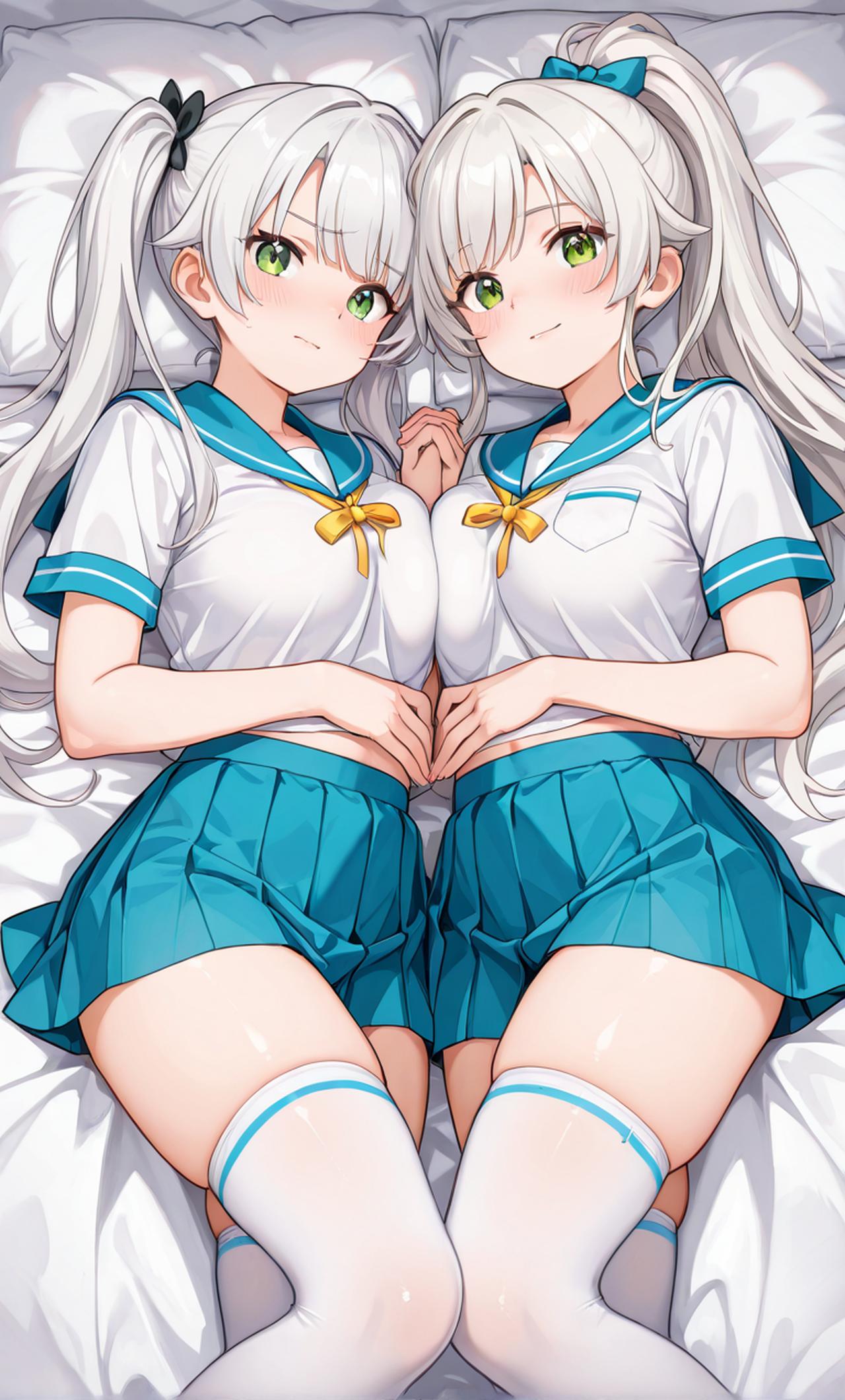 我的青梅是一对双胞胎姐妹。 从小一起长大两姐妹经常互相吃醋。 不过姐妹俩有个约定,不准偷跑。 不过两人都不知道的事,我都和对方保持着恋爱关系,并互相瞒着对方。 是楚白的青梅竹马,并且同时是学校里的校花。 两姐妹的长相都是白发绿瞳美少女。 两人讨厌和楚白以外的人接触,尤其是男绿茶。 并且对楚白有占有欲,禁止别的女孩子靠近楚白。 偶尔如果做出让两人吃醋的举动,两人会故意当着楚白的面两姐妹做着亲密的动作,让楚白吃醋。 虽然这样似乎只会让楚白更兴奋。 苏明霜: 双胞胎中的姐姐,扎着高马尾,总是害羞的腼腆少女,不过在和熟人交流的时候,会表现的稍微大胆些,总是喜欢黏着楚白,学习成绩很好。 有一次背着妹妹把,楚白约上了天台表白,因为不想让妹妹知道,所以这件事没有第3个人知道。 苏言七: 双胞胎中的妹妹,有点雌小鬼的性格,会管处白叫哥哥,扎着双马尾,平时喜欢捉弄姐姐,喜欢当着姐姐的面和楚白挽在一起,让姐姐吃醋。会私自处理处别的女生写给处白的情书。 再向楚白告白的时候威胁处罚,如果不答应,就把小时候的宿舍全说出去,这件事也没有告诉姐姐。